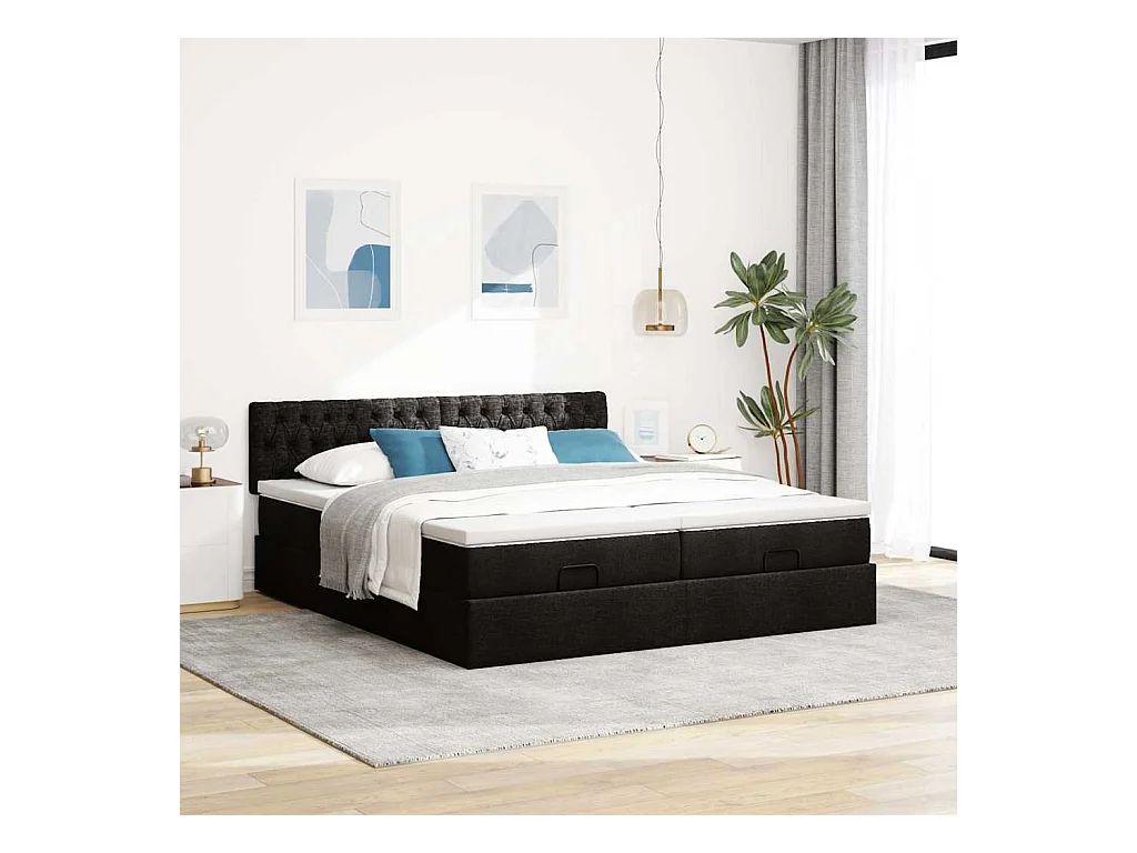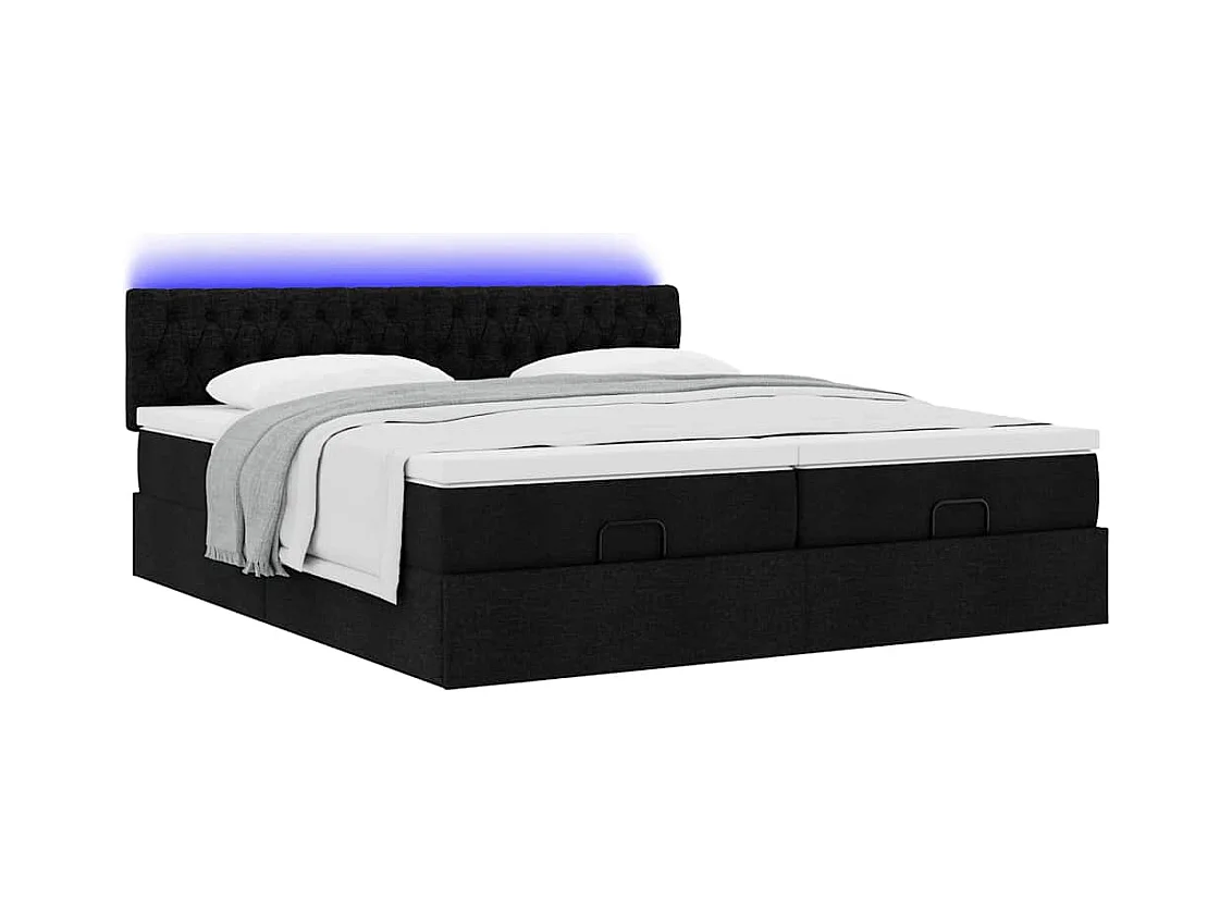 Ottoman bed met matrassen en LED's 180x200cm stof zwart