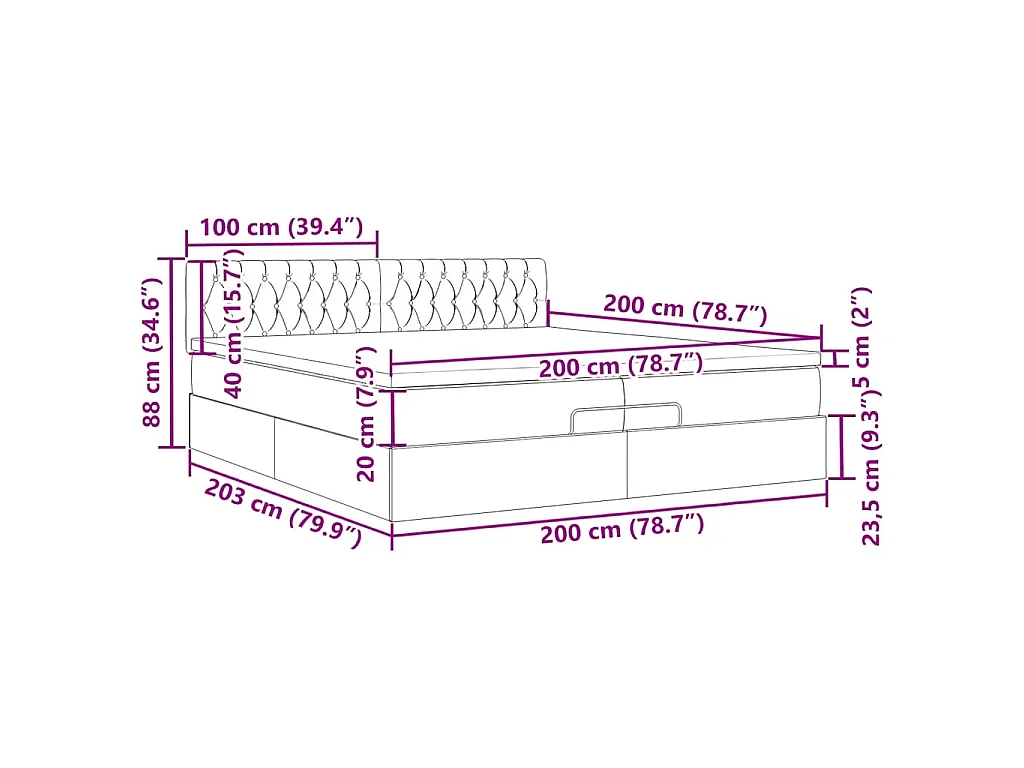 Ottoman bed met matrassen en LED's 200x200cm stof donkergrijs