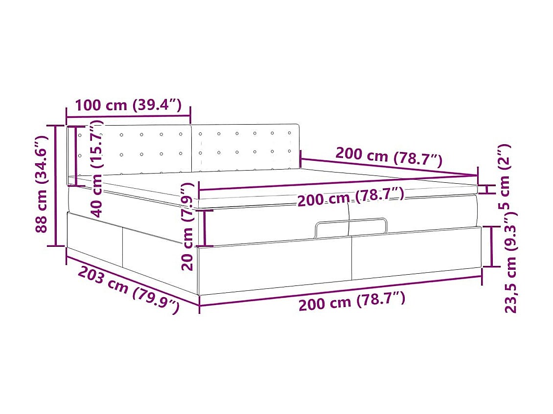 Ottoman bed met matrassen en LED's 200x200cm stof zwart