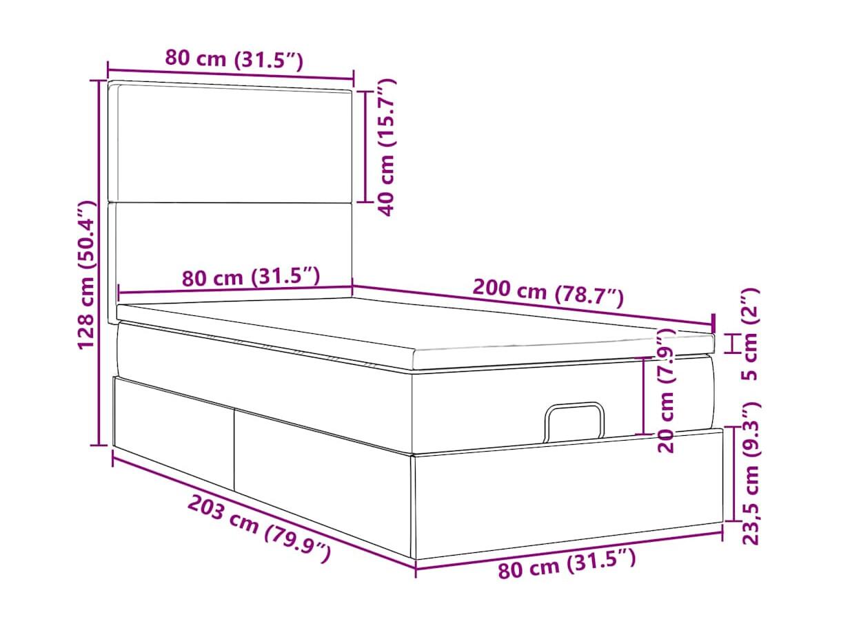 Ottoman bed met matrassen 80x200cm fluweel donkergrijs