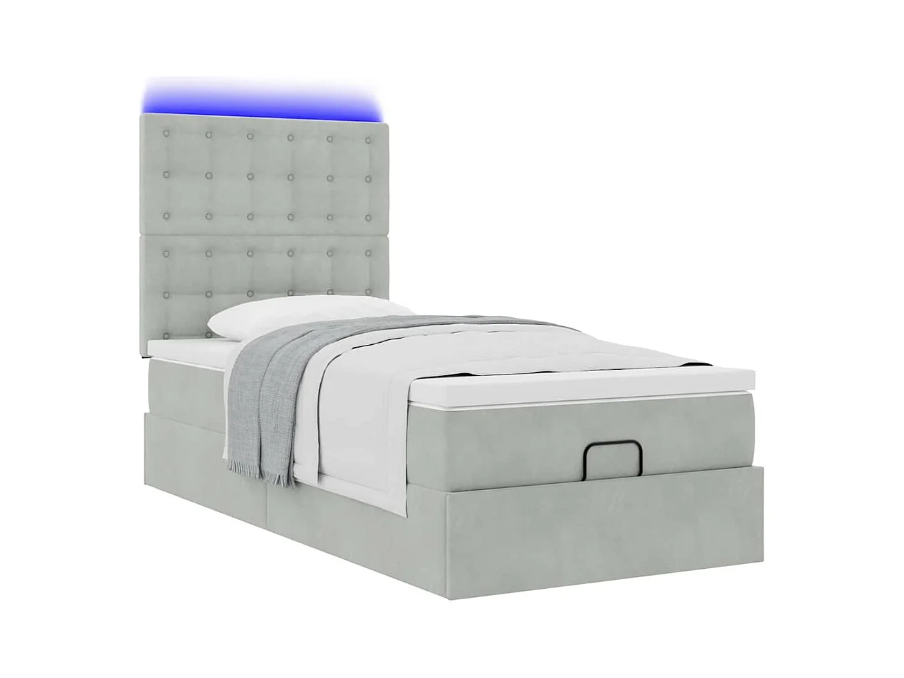 Ottoman bed met matrassen en LED's 90x200cm fluweel lichtgrijs