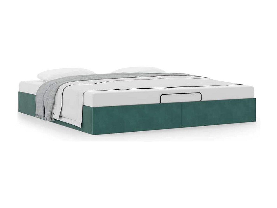 Gestoffeerd bed met opbergruimte – 200x200 cm – donkergroen – waterafstotende velours – SOFTIE SLIM