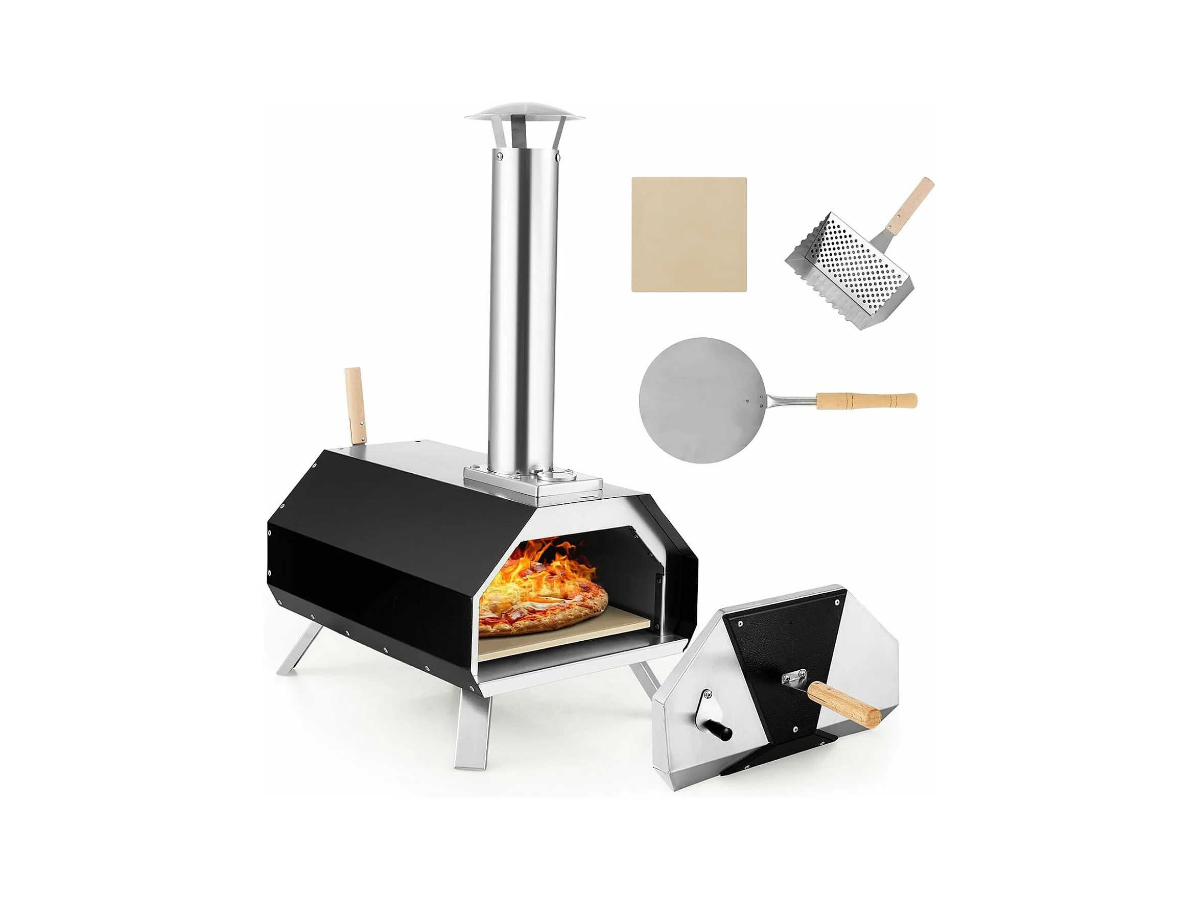 4-in-1 pizzaoven, outdoor grill, houtgestookte pizzaoven, pizzasteen, pizzaschep en grillrooster, draagbare tuinoven voor tuin, camping, feest
