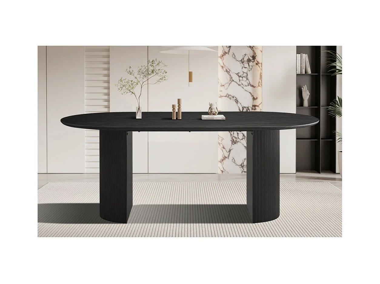 Eetkamertafel 180cm - Ovaal - Keramiek Zwart - 4 Personen