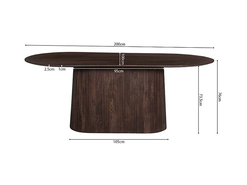 Ovale tafel van massief hout voor 6 personen, collectie MITCHEL in donkerbruin exotisch mangohout 200x100cm