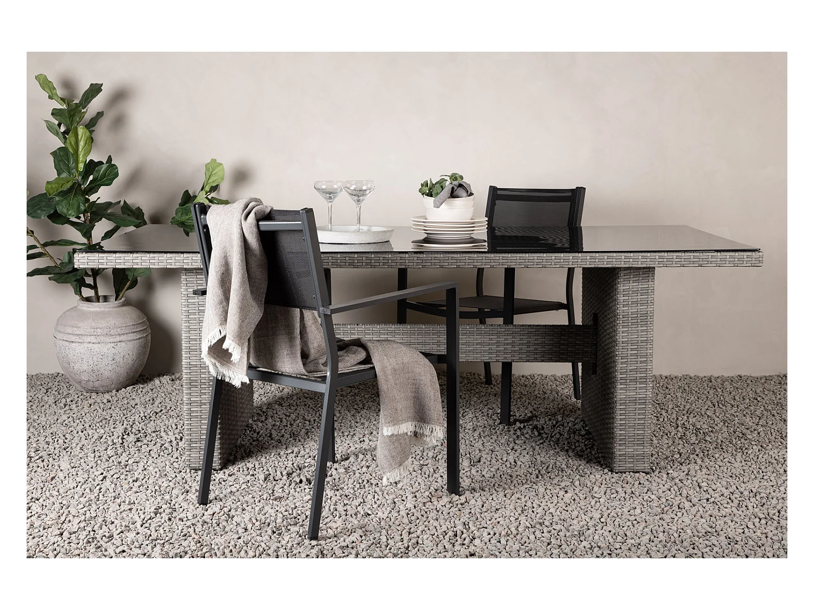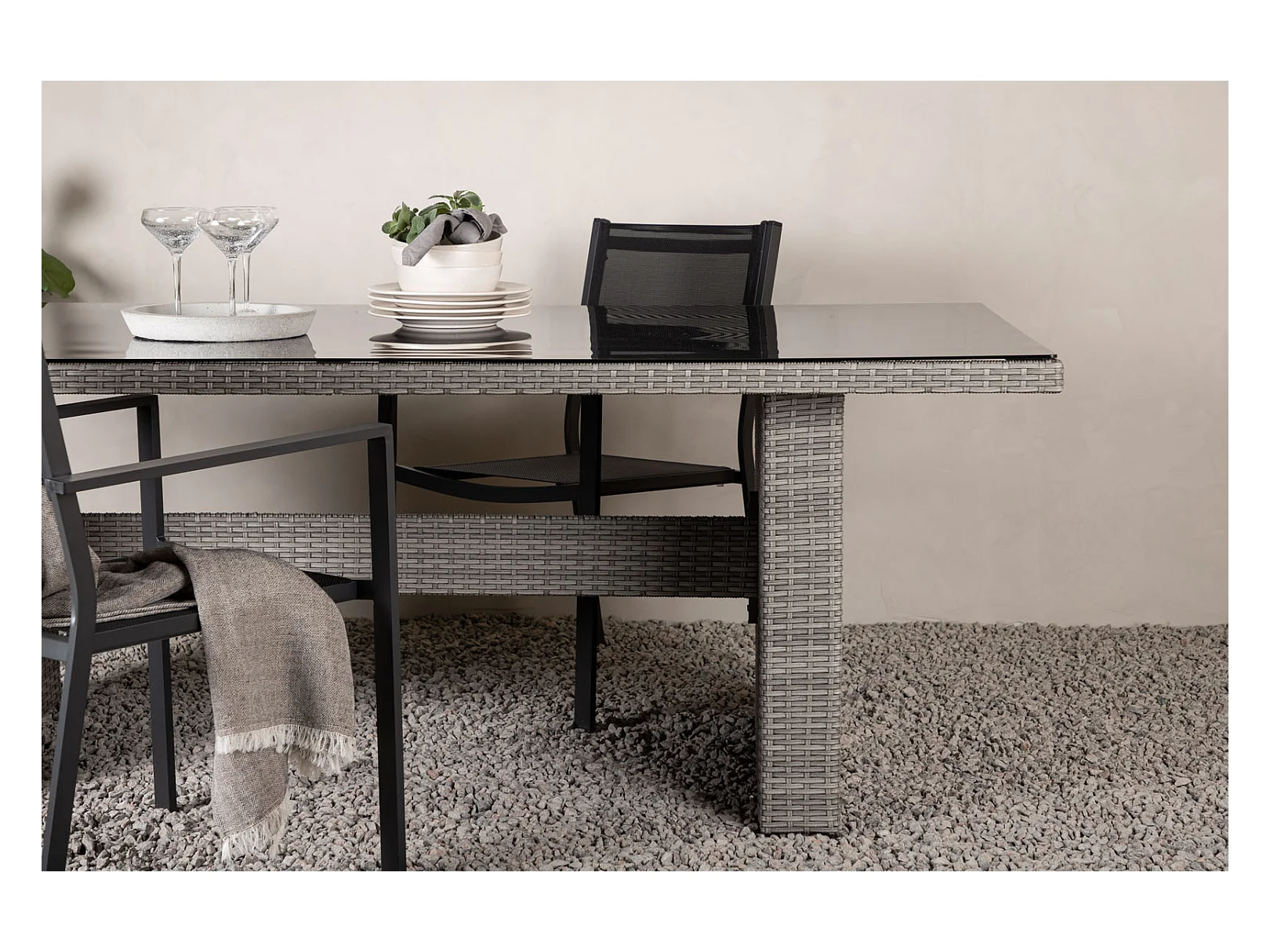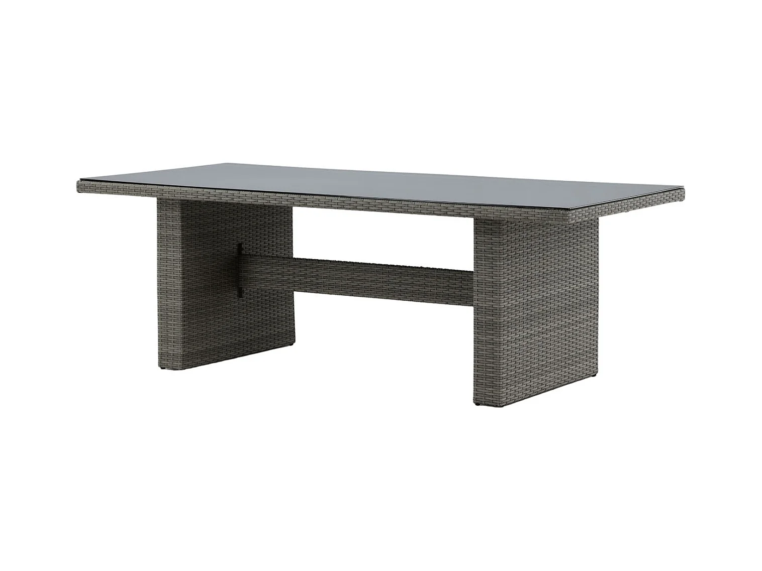 Tuintafel met glazen blad 190x80x74 cm poly rattan grijs