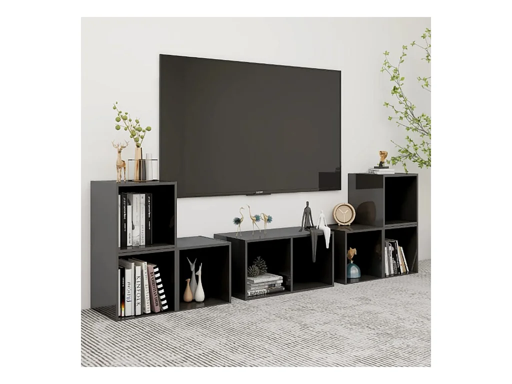 Padua 6-delige Tv-meubelset bewerkt hout hoogglans grijs