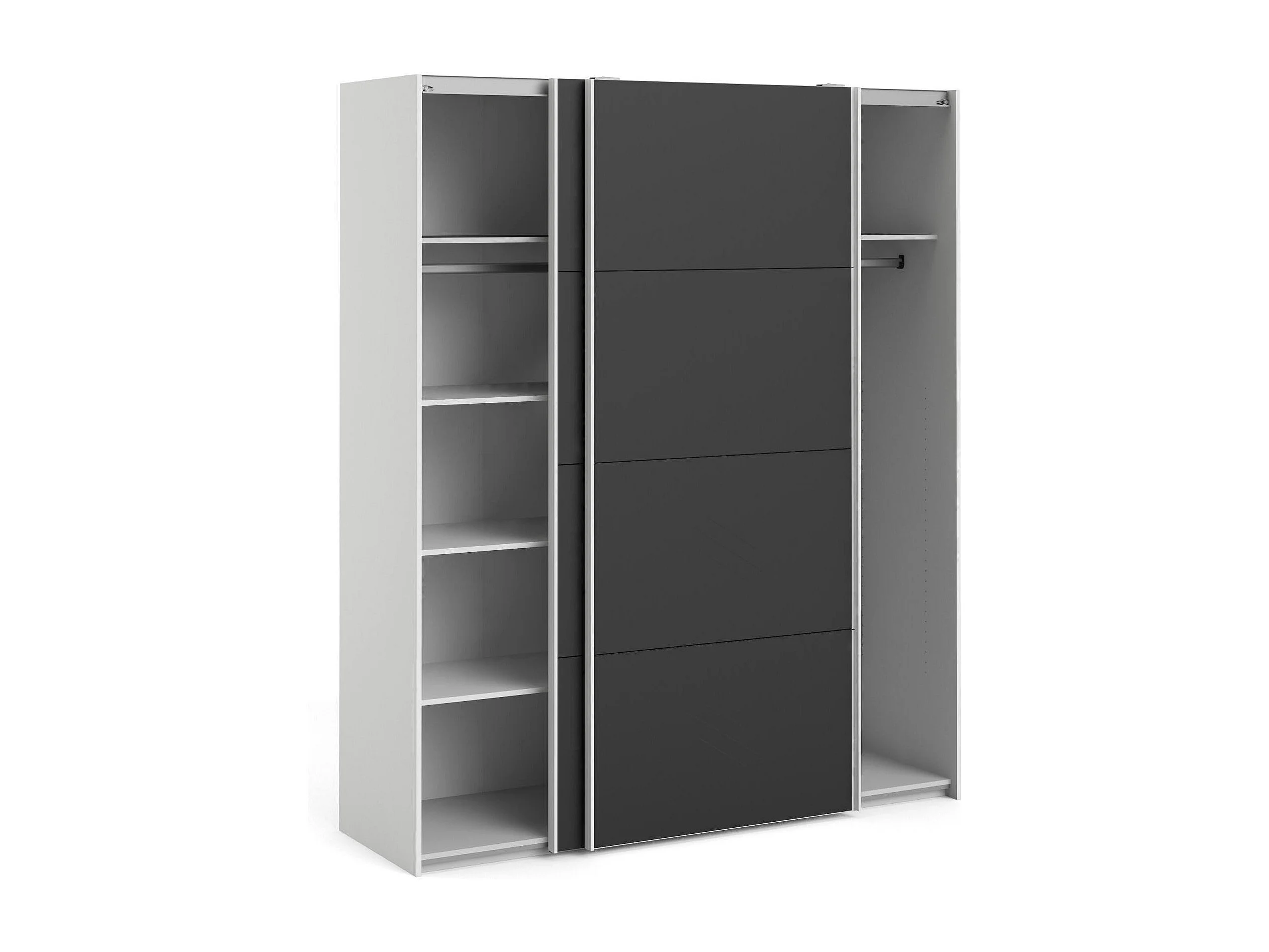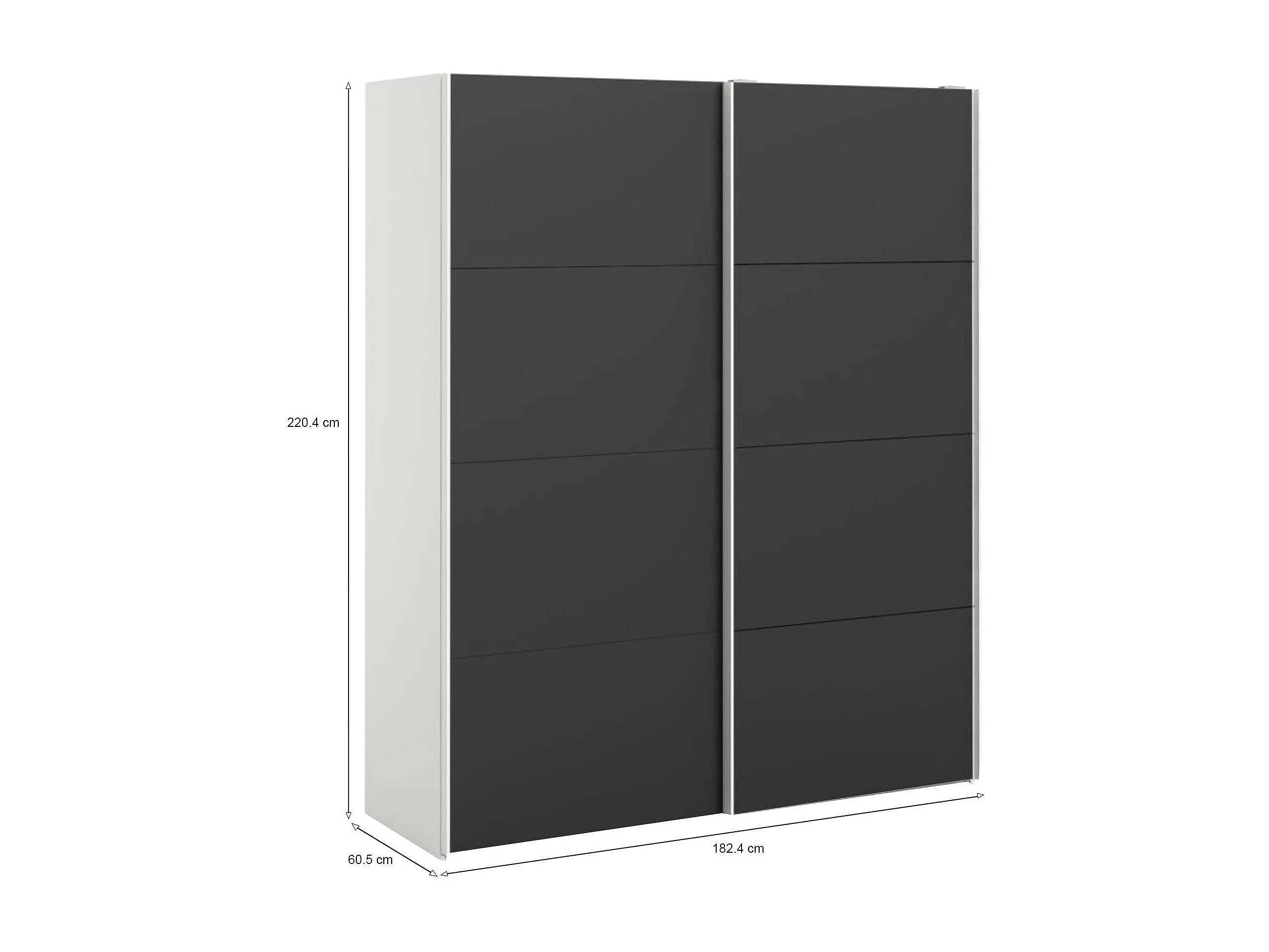Paeng 2-deurskast, Slaapkamermeubel, Inloopkast, Kledingkast, 182x61 h220 cm, Zwart en Wit