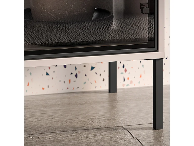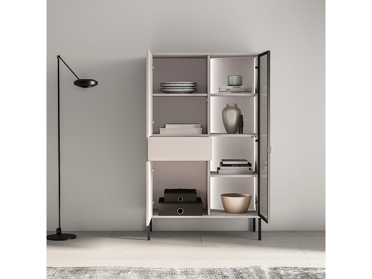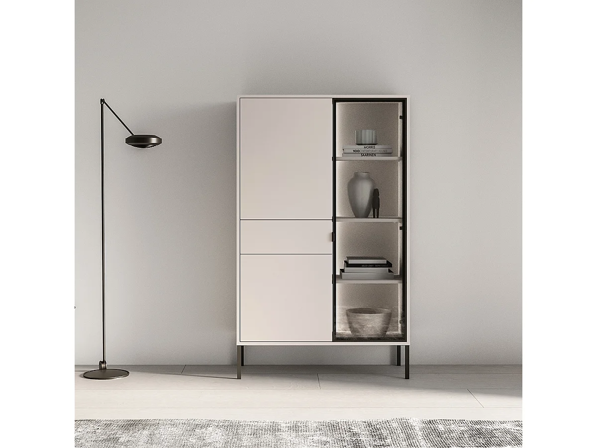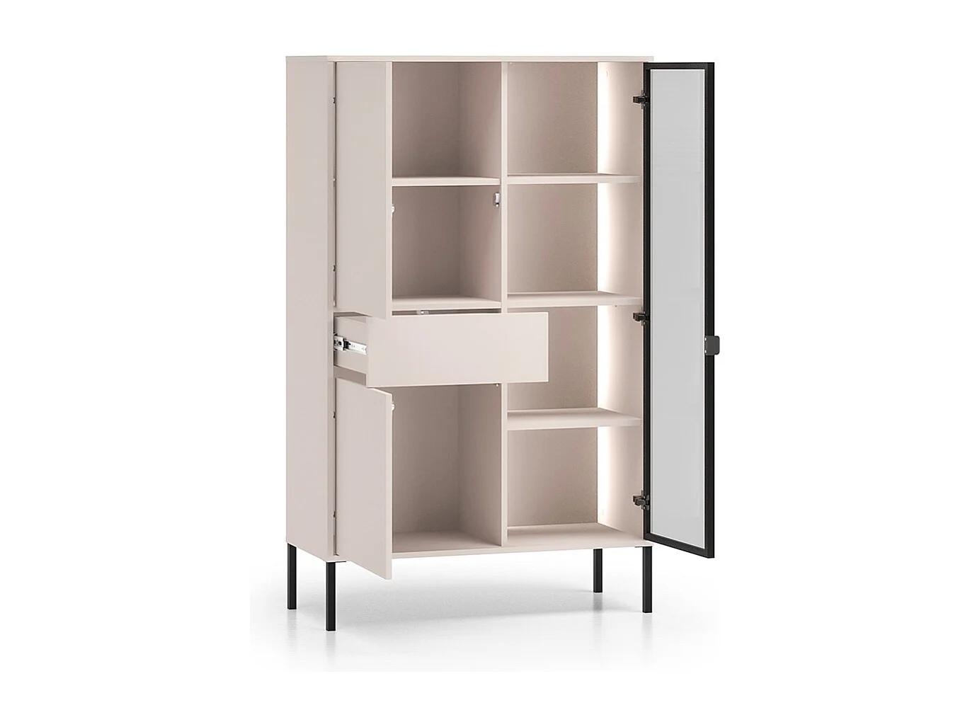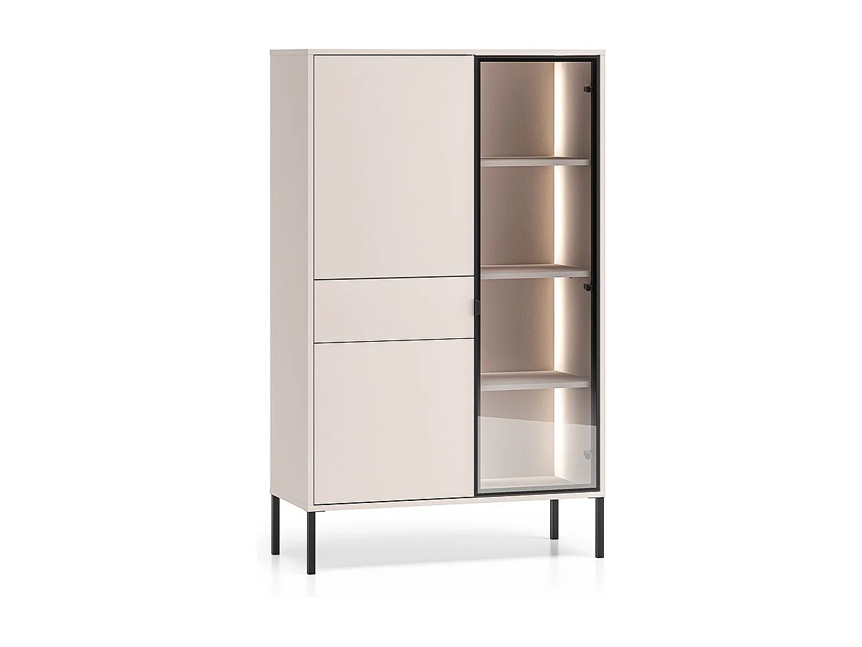 Paige kasjmier en zwarte 3-deurs servieskast met 1 lade