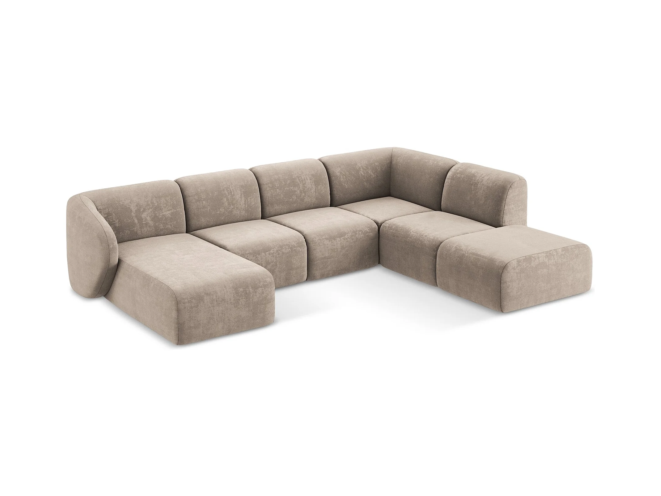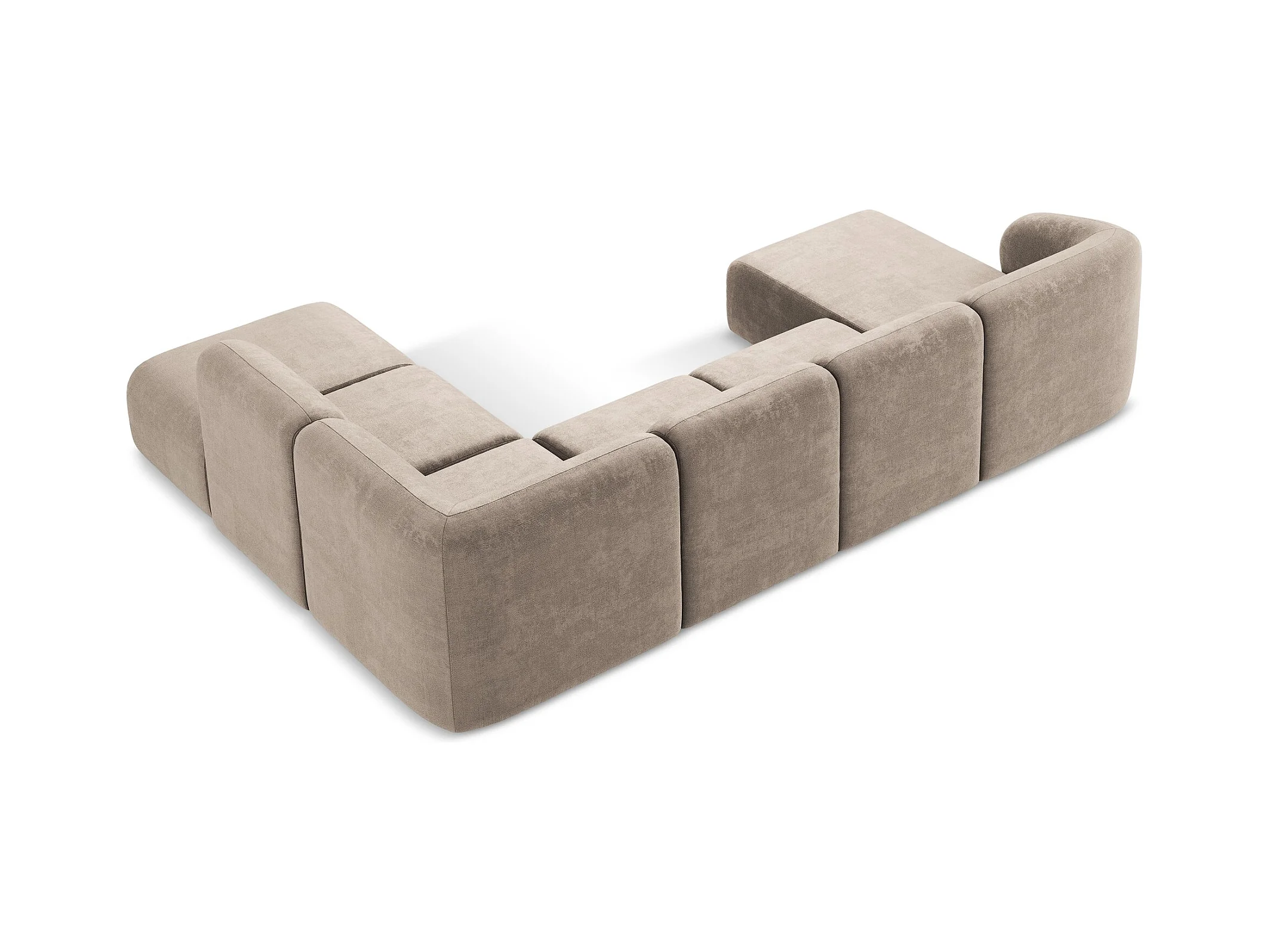 Panoramische hoekbank rechts van donkerbeige chenille stof - LANI