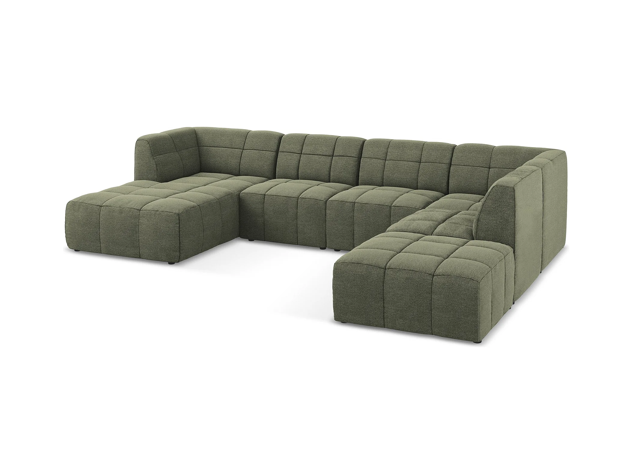 Panoramische hoekbank van olijfgroen bouclé - ALOHA
