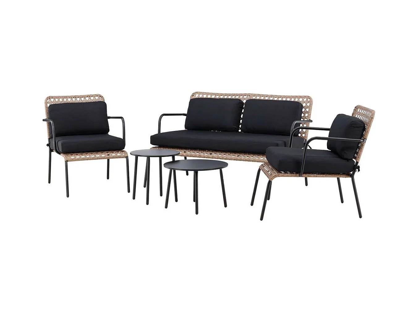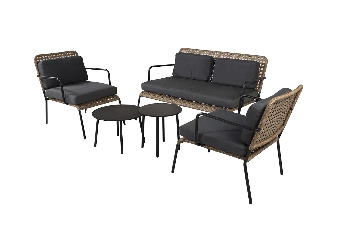 Paola tuinmeubelset 5 delen zwart, grijs, naturel.