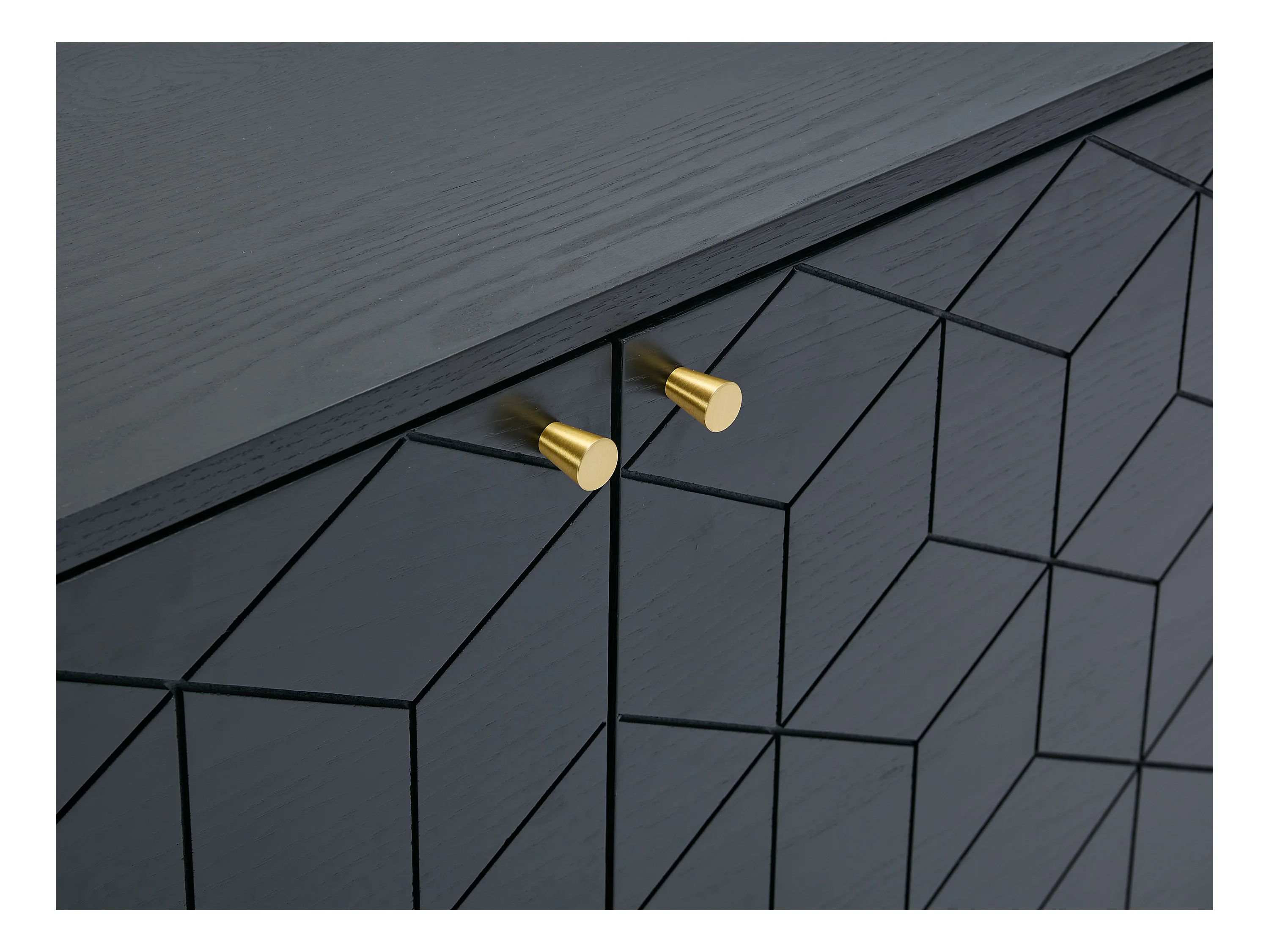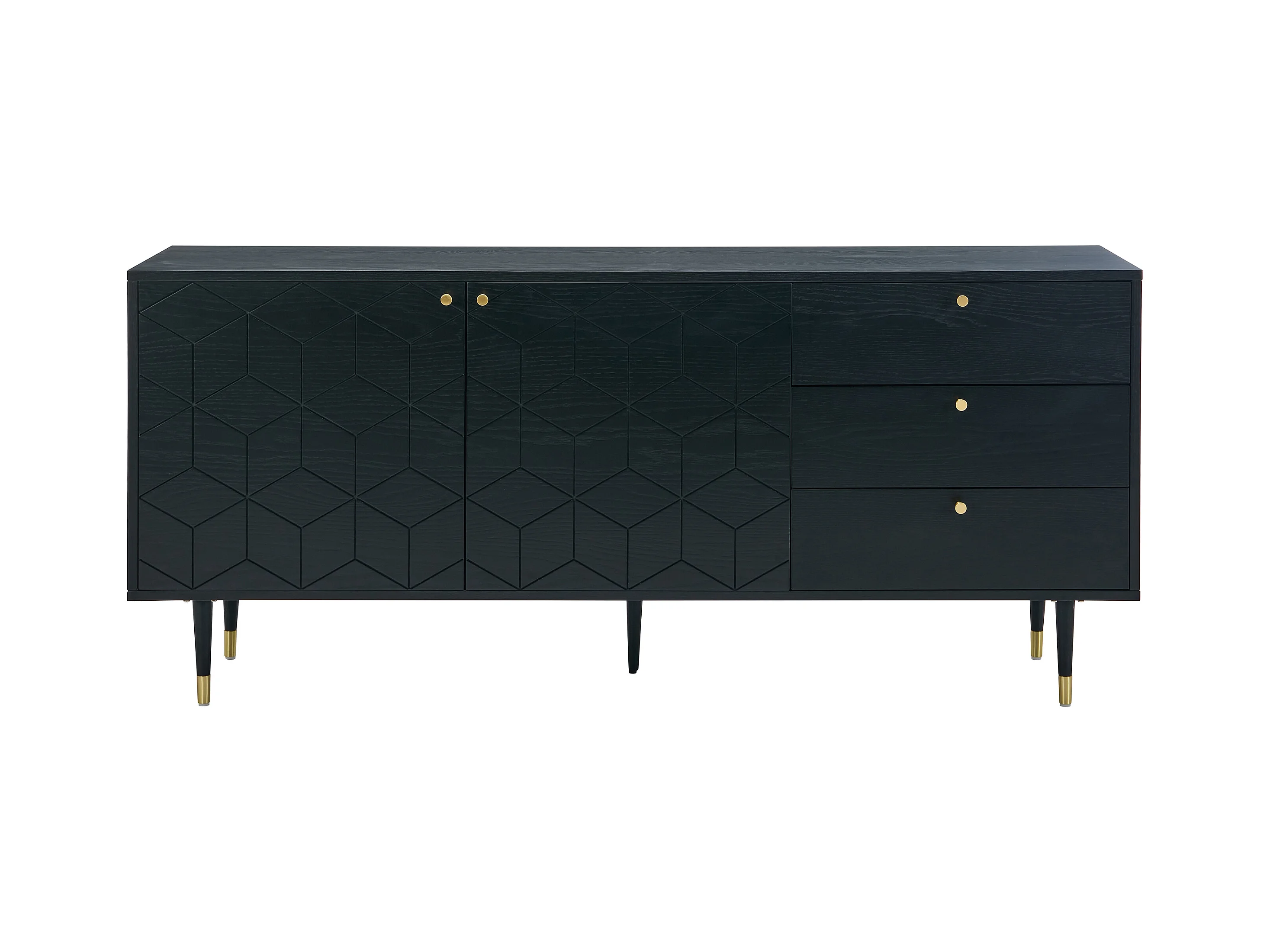 Buffetkast met 2 deurtjes en 3 lades in eikenfineer - Zwart en goudkleurig - PARIOMA