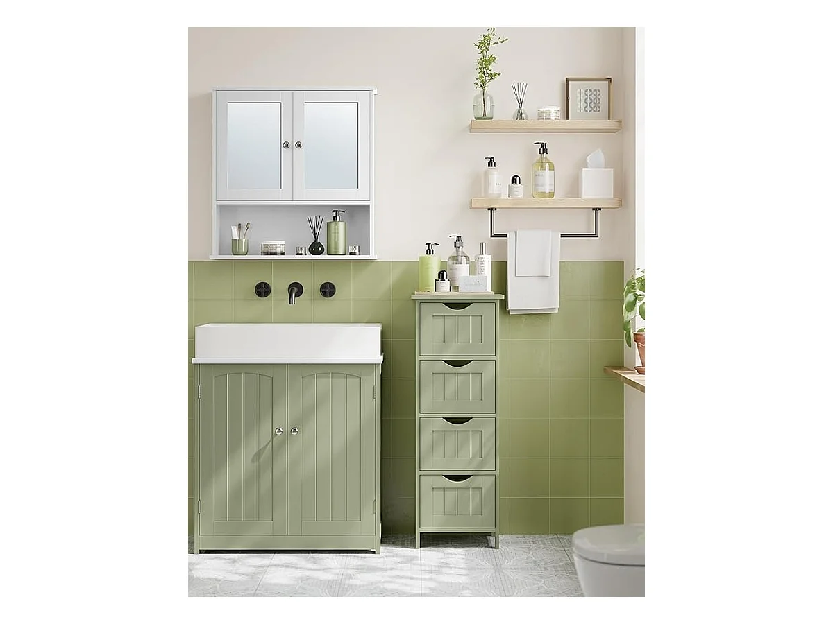 Parya Home Badkamerkast, badkamerkast, zijkast met 4 laden, 30 x 30 x 82 cm, lauriergroen