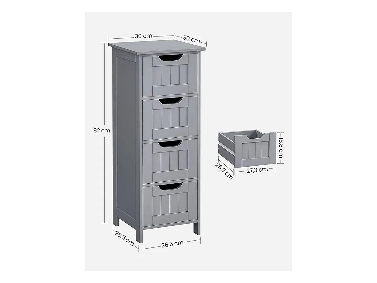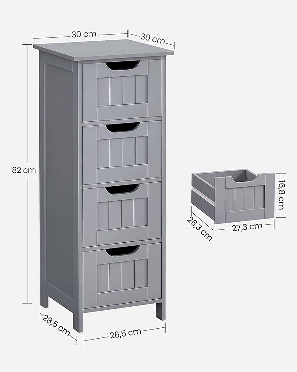 Parya Home Badkamerkast, badkamerkast, zijkast met 4 laden, 30 x 30 x 82 cm, mat grijs