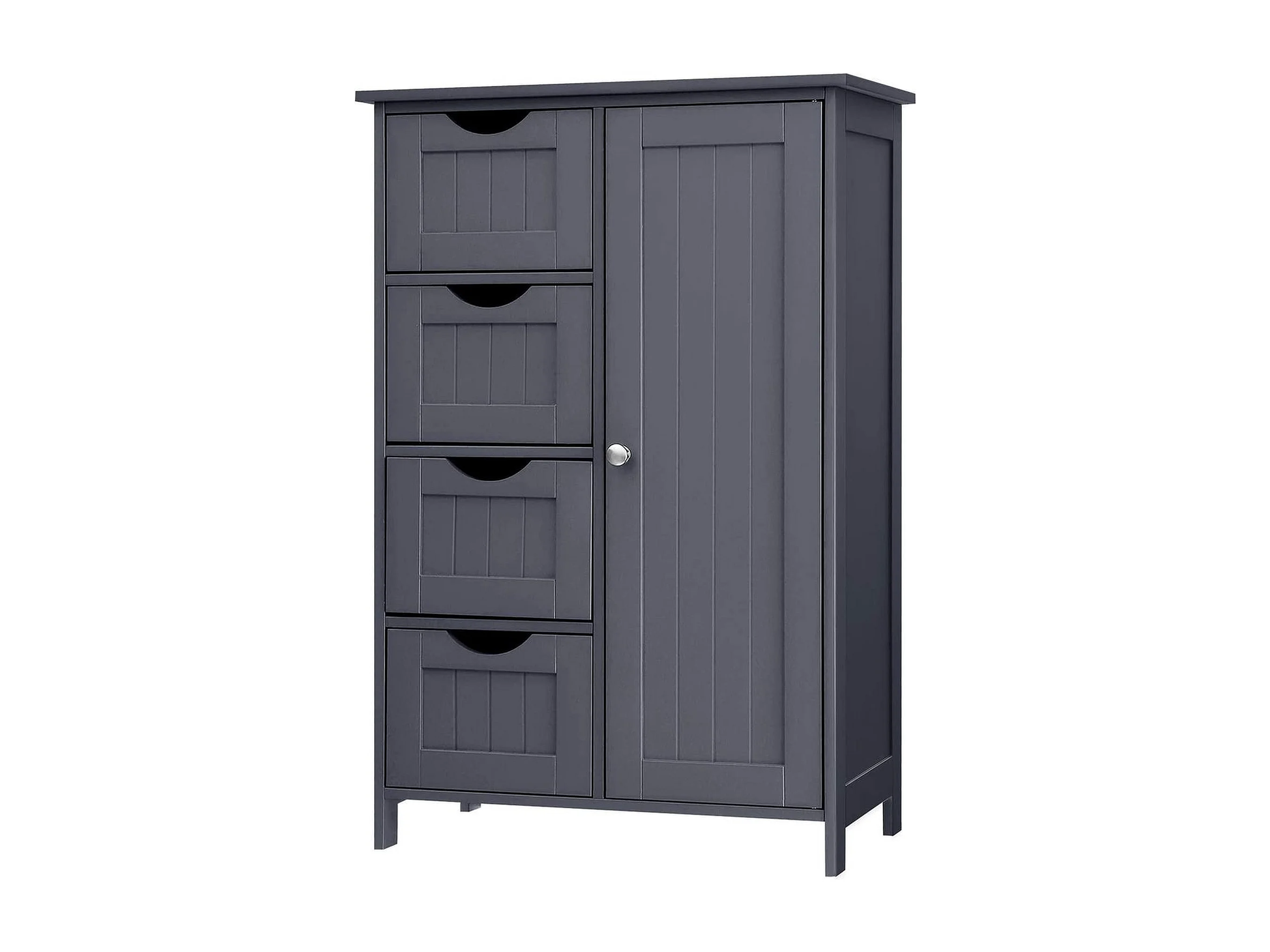 Parya Home Badkamerkast, badkamerkast, zijkast met 4 laden, 30 x 30 x 82 cm, mat grijs