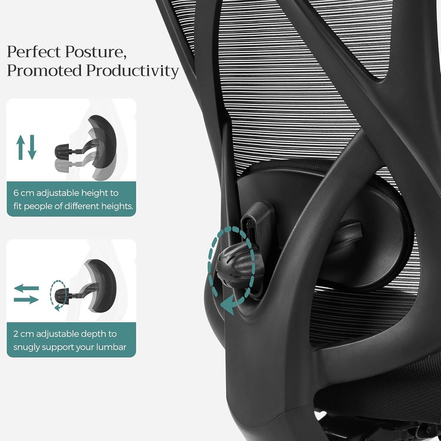 Parya Home Ergonomische Bureaustoel Verstelbare computerstoel, tot 150 kg, hoogte verstelbaar, zwart