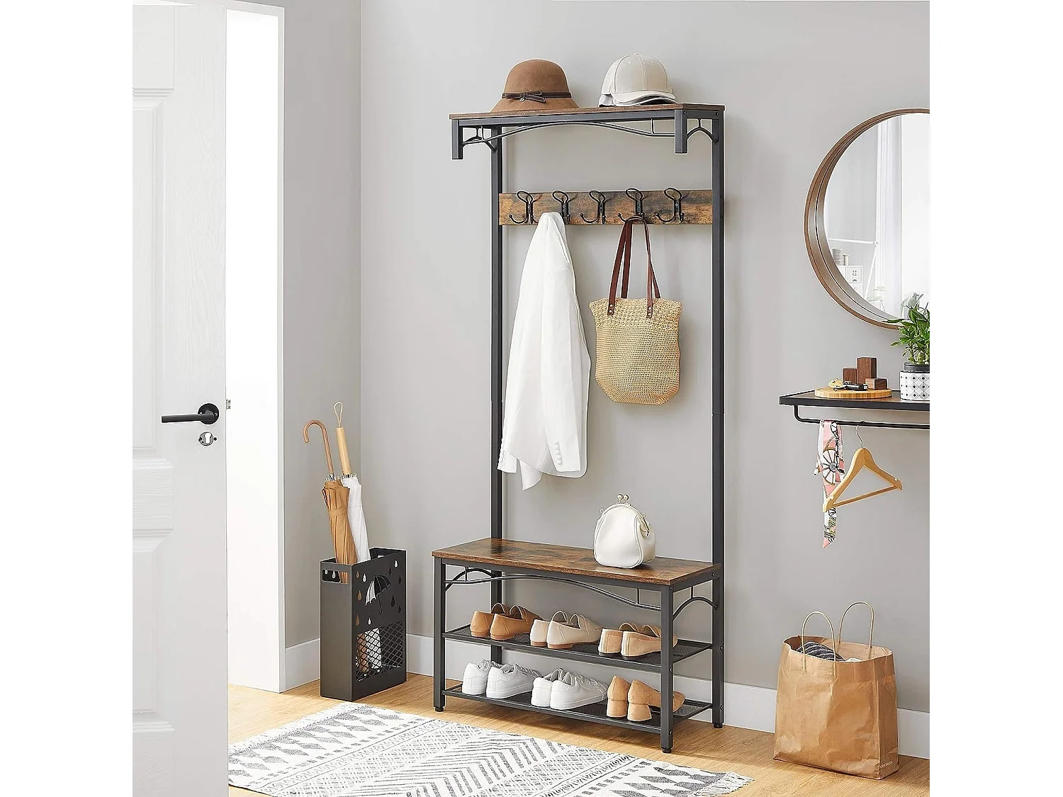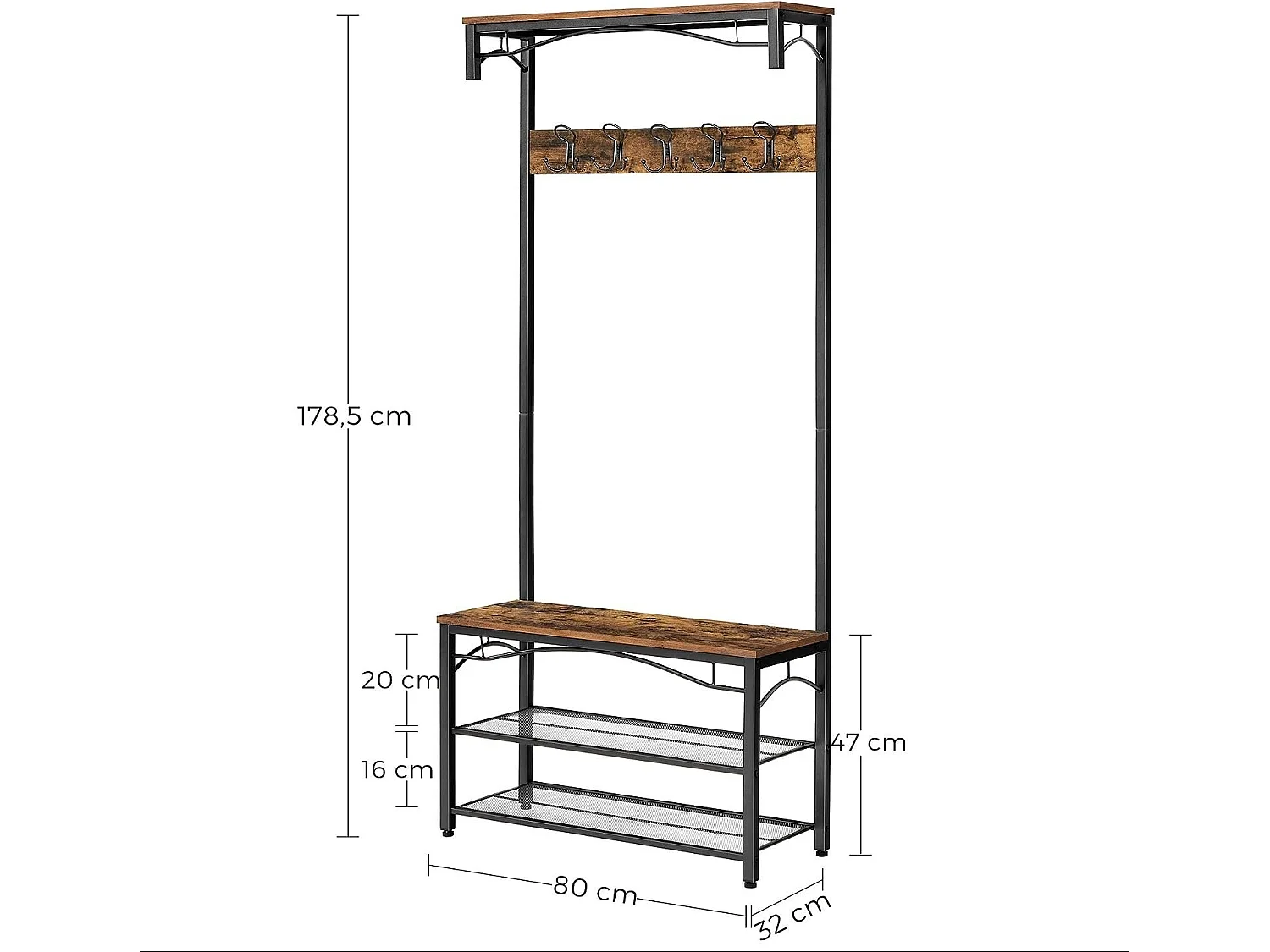 Parya Home 3 in 1 kapstok met schoenenrek entreekast stalen frame industrieel 32 x 70 x 175 cm