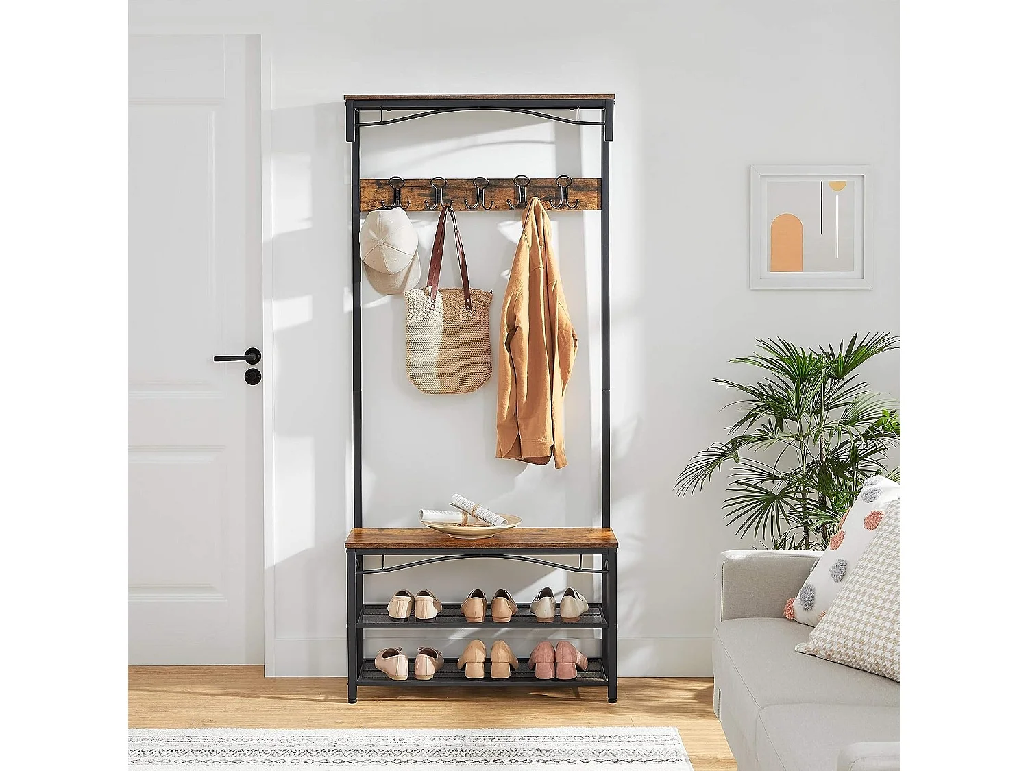 Parya Home - Kapstok - 10 Haken - Incl. Schoenenrek - Donkerbruin