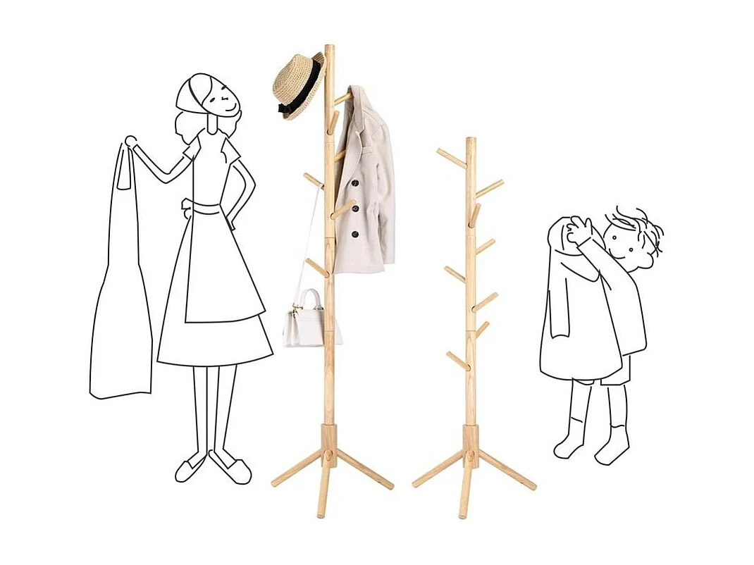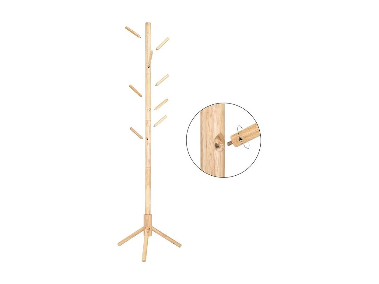 Parya Home Boomvormige Kapstok – Kledingrek van massief hout met 8 haken en 3 verstelbare hoogtes