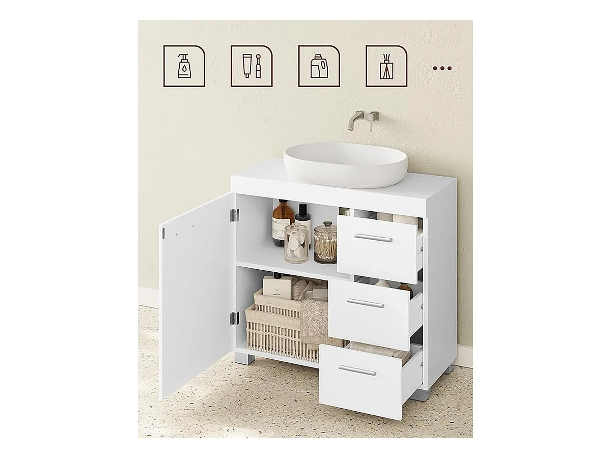 Parya Home Onderkast, Badkamerkast met 3laden, 2 compartimenten achter de deur, 30x 70x 64cm, Wit