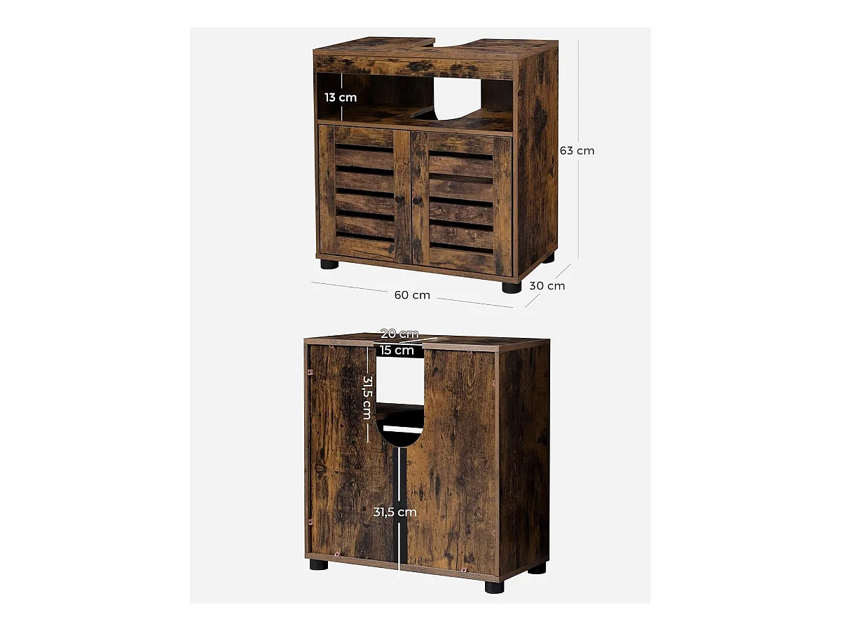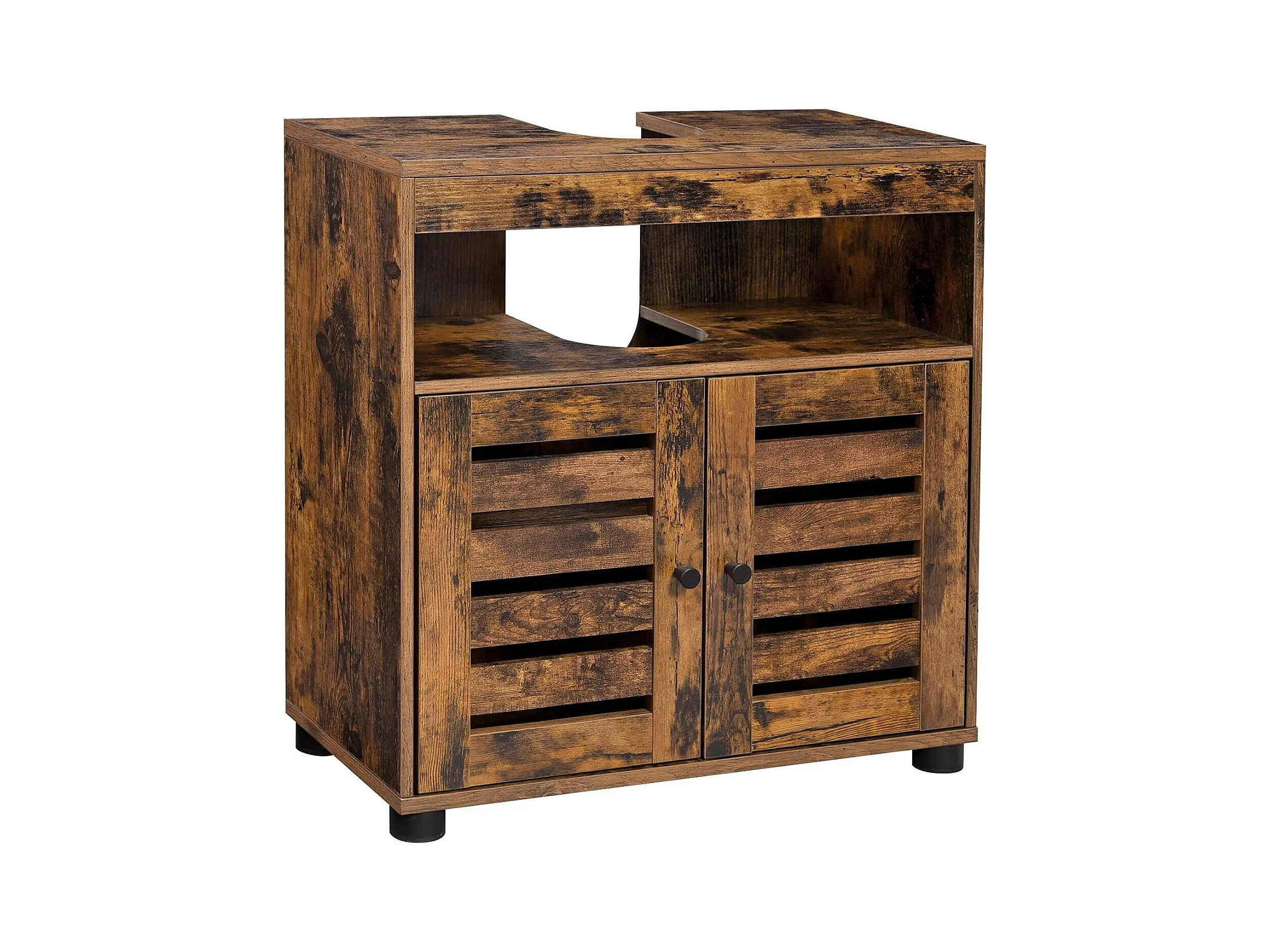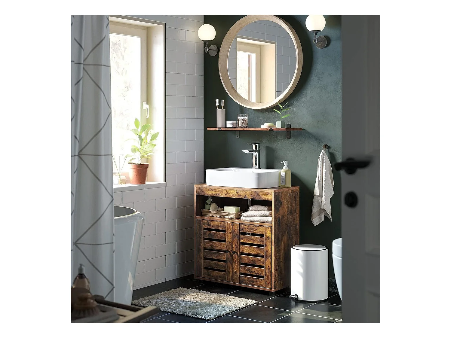Parya Home Vintage Wastafelmeubel – 2 lamellendeuren en verstelbare plank, 60 x 30 x 63 cm,bruin