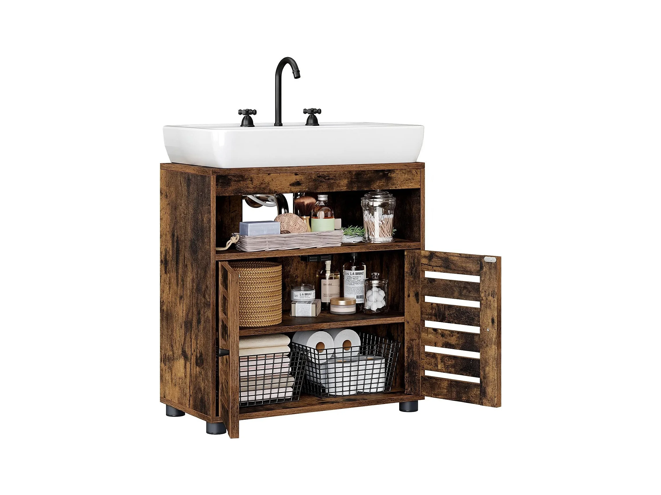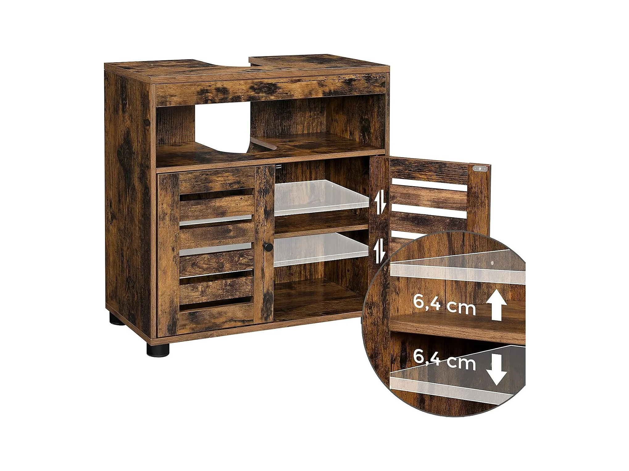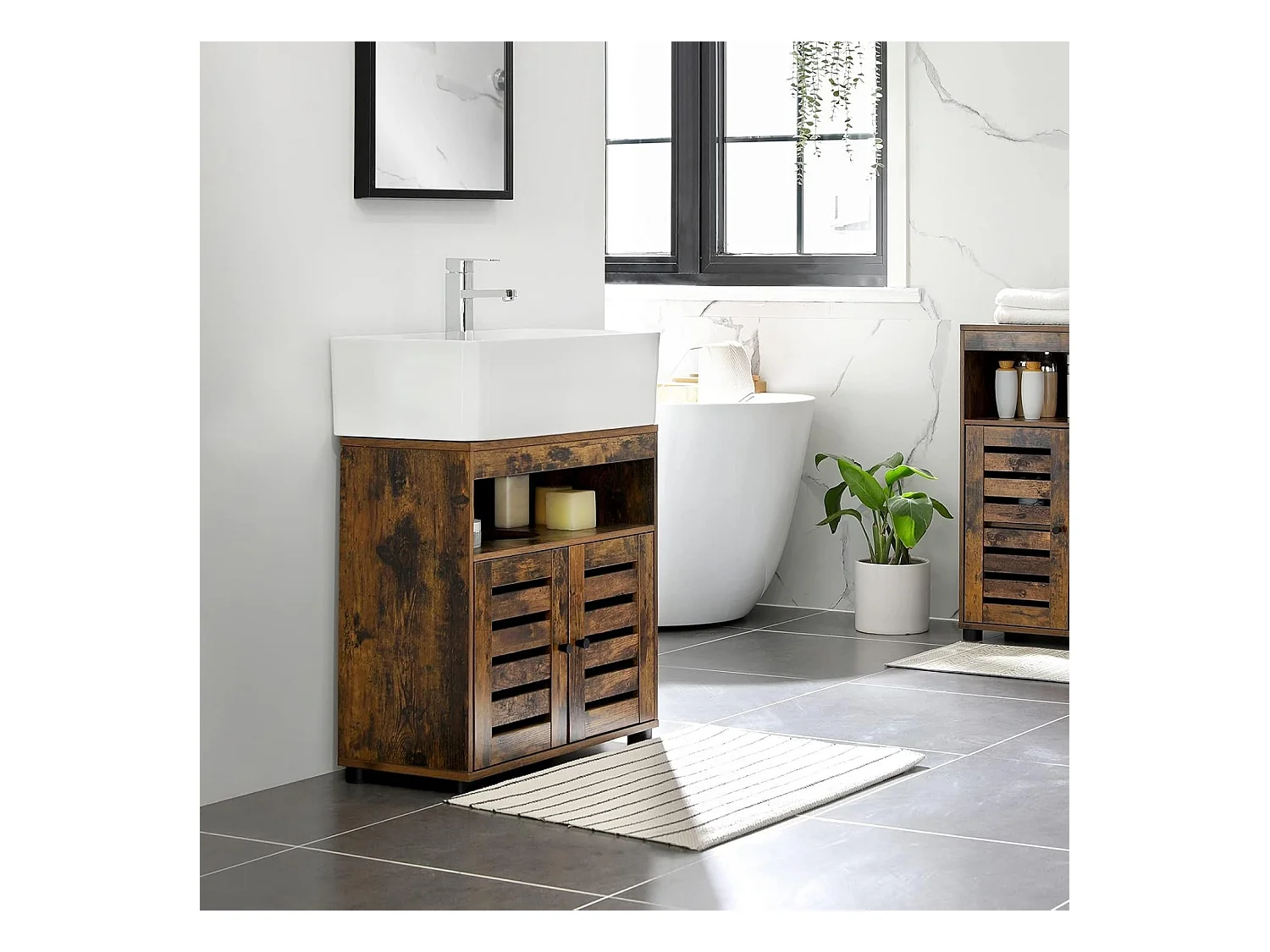 Parya Home Vintage Wastafelmeubel – 2 lamellendeuren en verstelbare plank, 60 x 30 x 63 cm,bruin