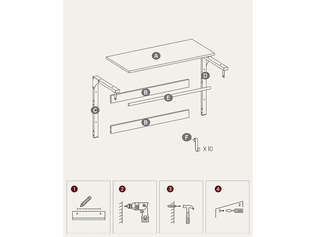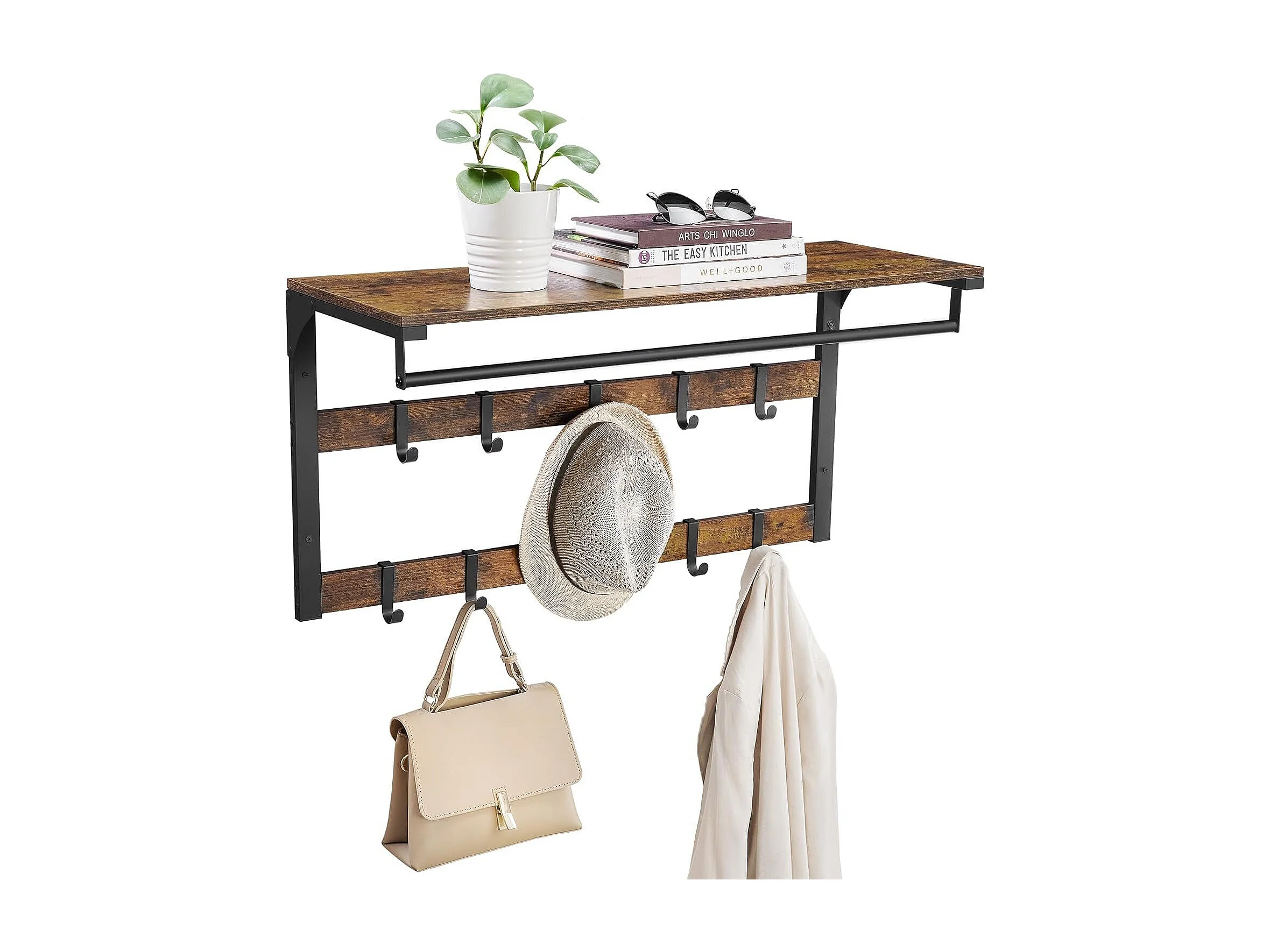 Parya Home Wandkapstok met Plank – Ruimtebesparende wandplank met 10 afneembare haken