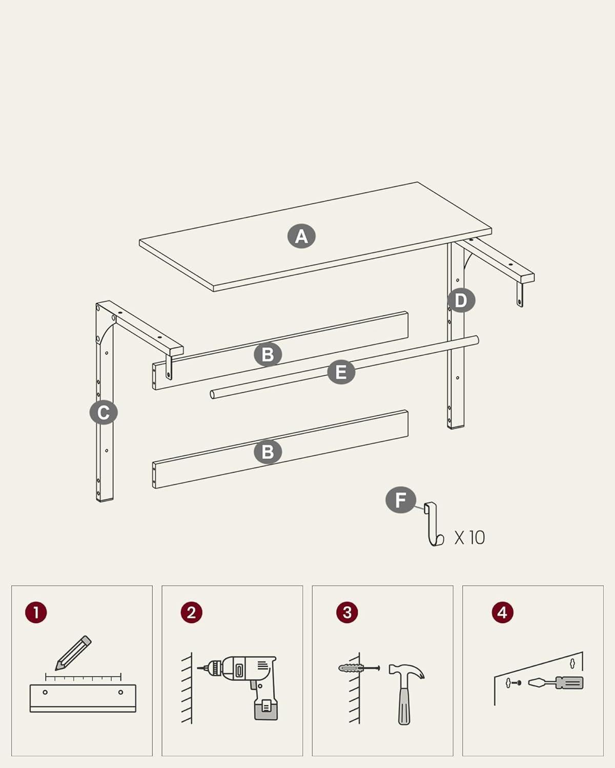 Parya Home Wandkapstok Opbergruimte –Halorganizer met kleerhanger, ruimtebesparend, 30 x 65 x 42 cm,