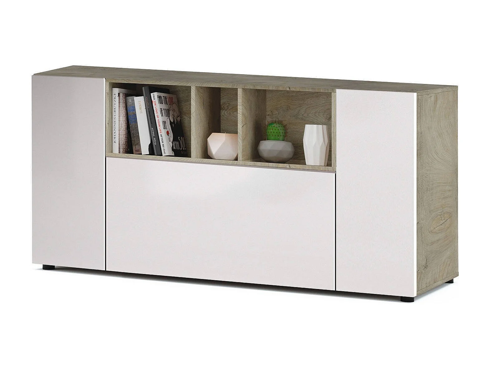 Dmora Dressoir Paterson 41x150x76h cm Wit 2 Planken 8 Vakken, Dressoir 3 Deuren