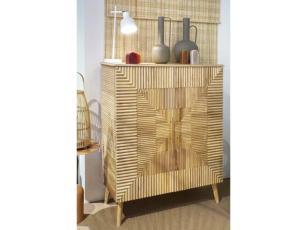 Paulownia dressoir van MDF, 100x44x118 cm, lichtbruin.