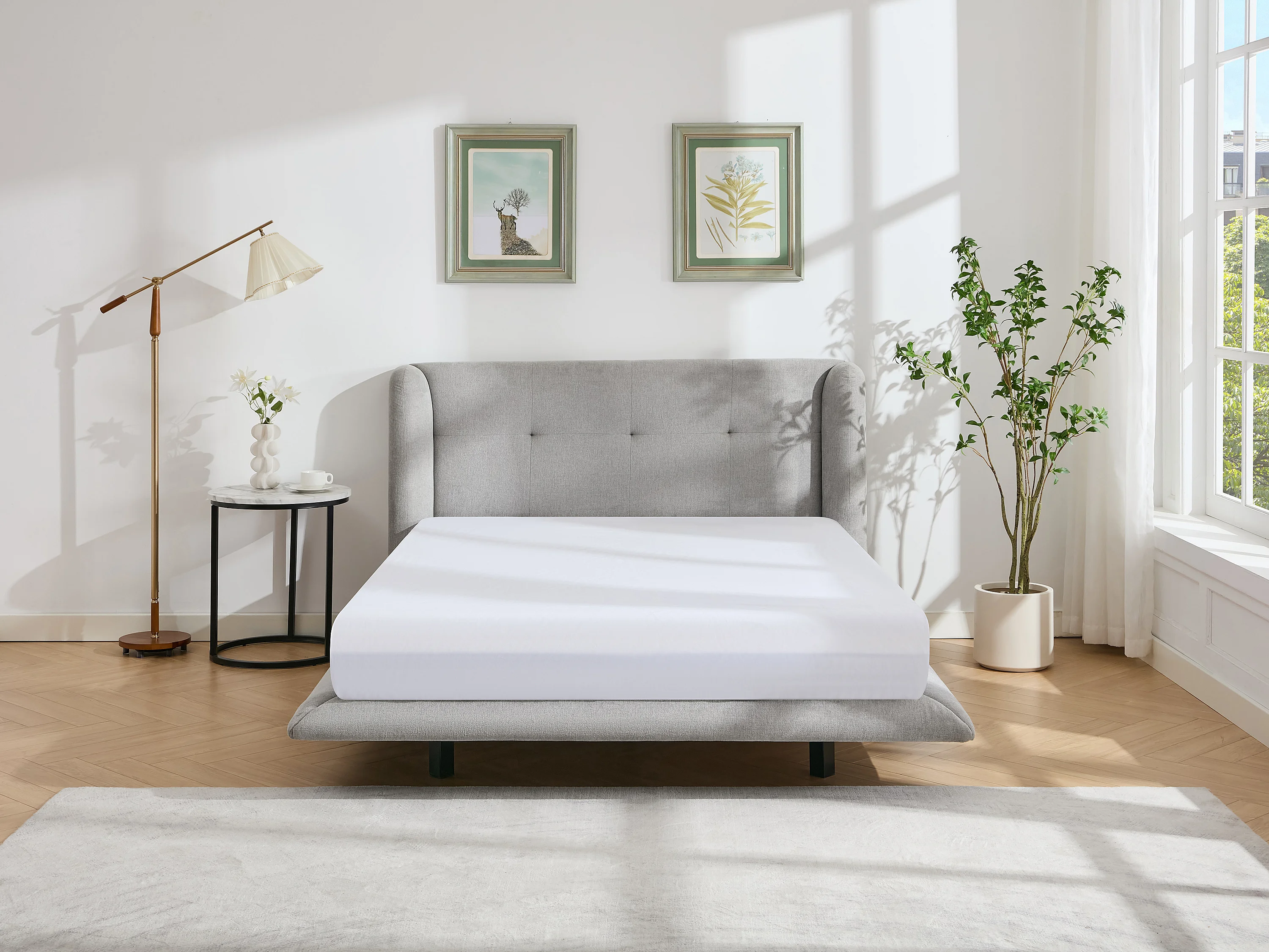 Bed 140 x 190 cm met hoofdbord met capitons - Stof - Lichtgrijs + matras - PENAVI