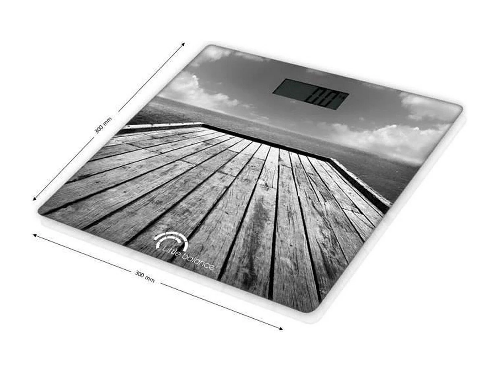 Personenweegschaal Little Balance 8107 Ponton gehard glas 30x30 cm kustmotief 180 kg nauwkeurigheid 100 g LCD-scherm