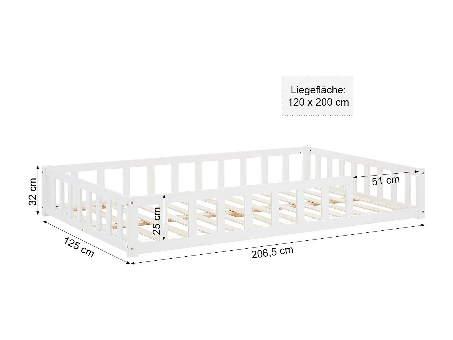 Peuter Vloerbed 120x200 cm wit Montessori Bed met Barrières
