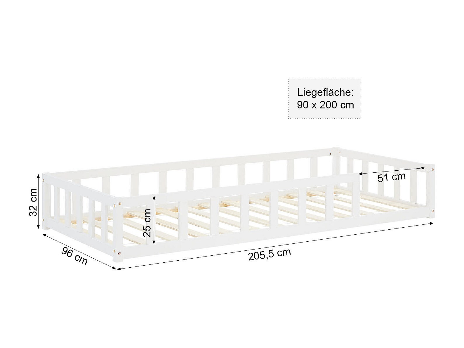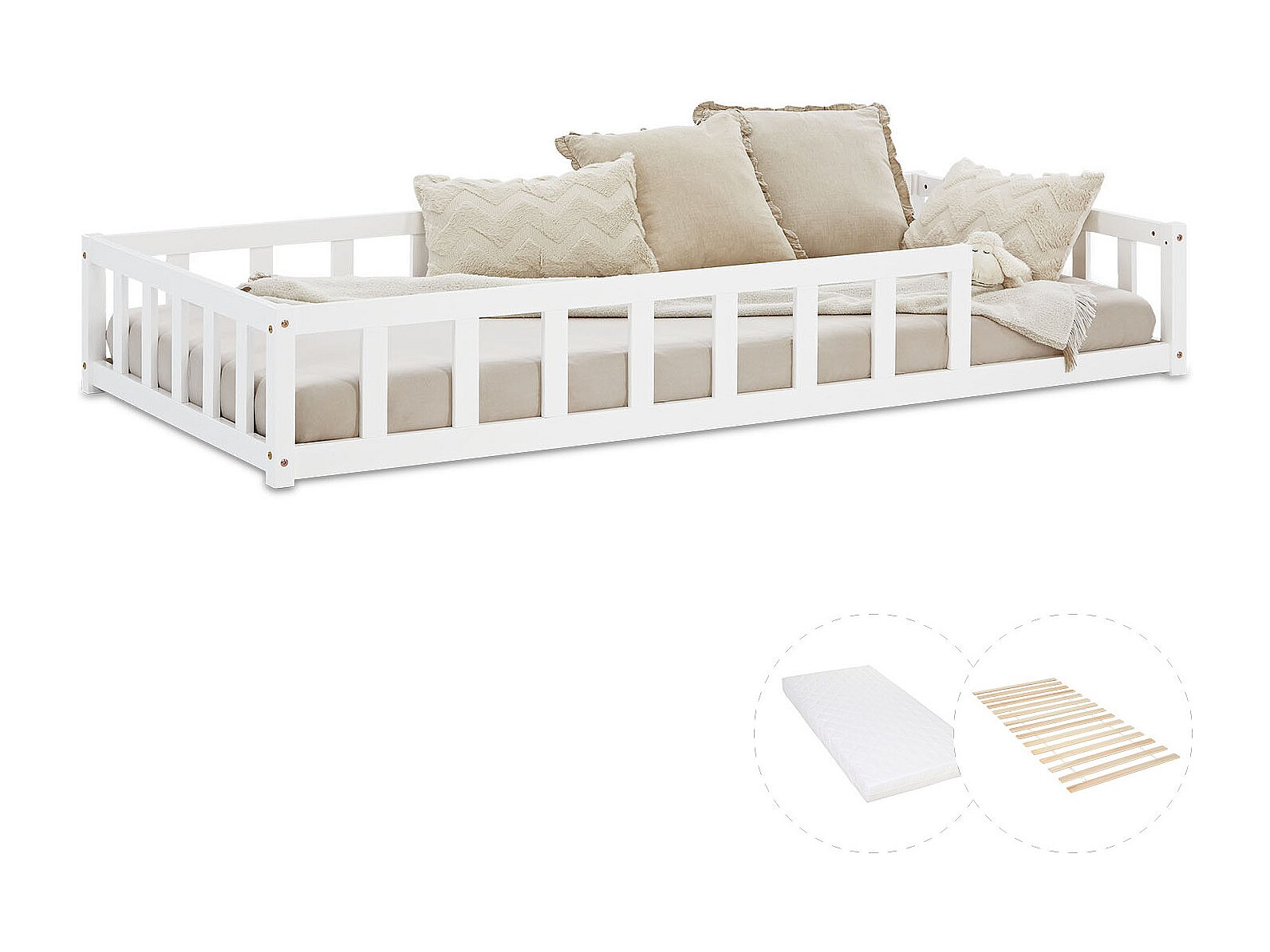 Peuter Vloerbed 90x200 cm wit Montessori Bed met Barrières