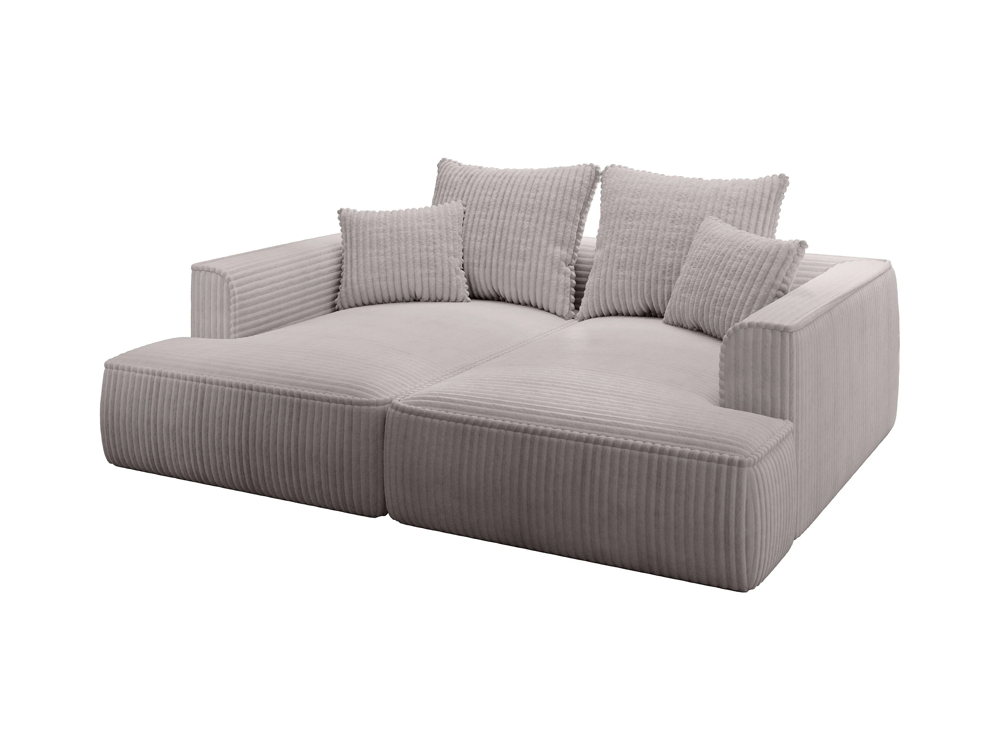 Comfortabele driezitsbank met diepe zitting van lichtgrijs ribfluweel met brede ribbels PINETA