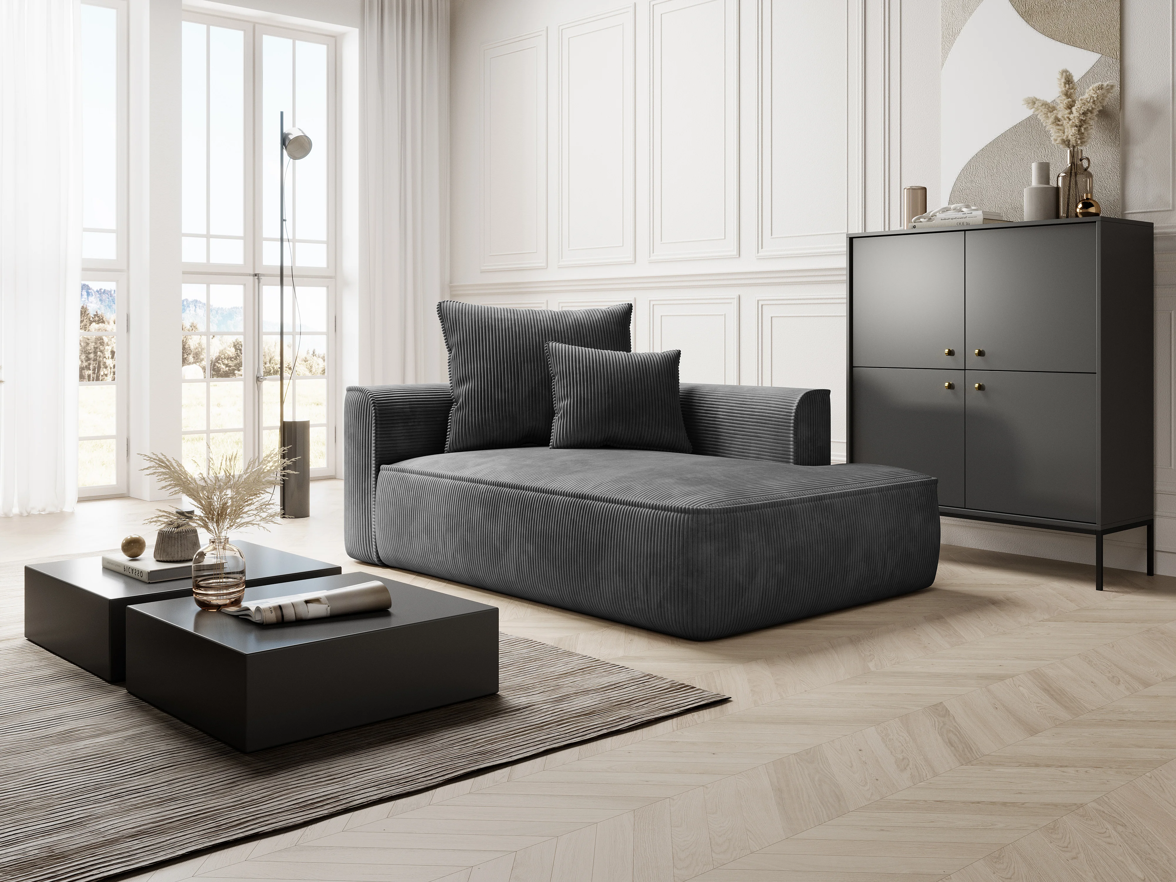 Chaise longue met hoek rechts van antraciet ribfluweel PINETA