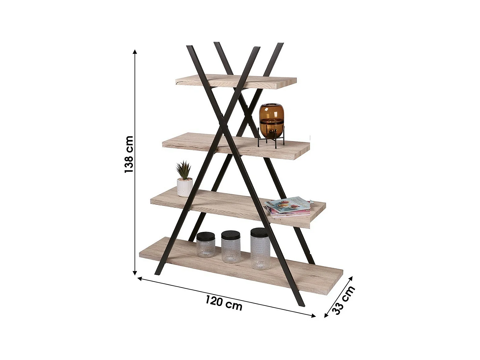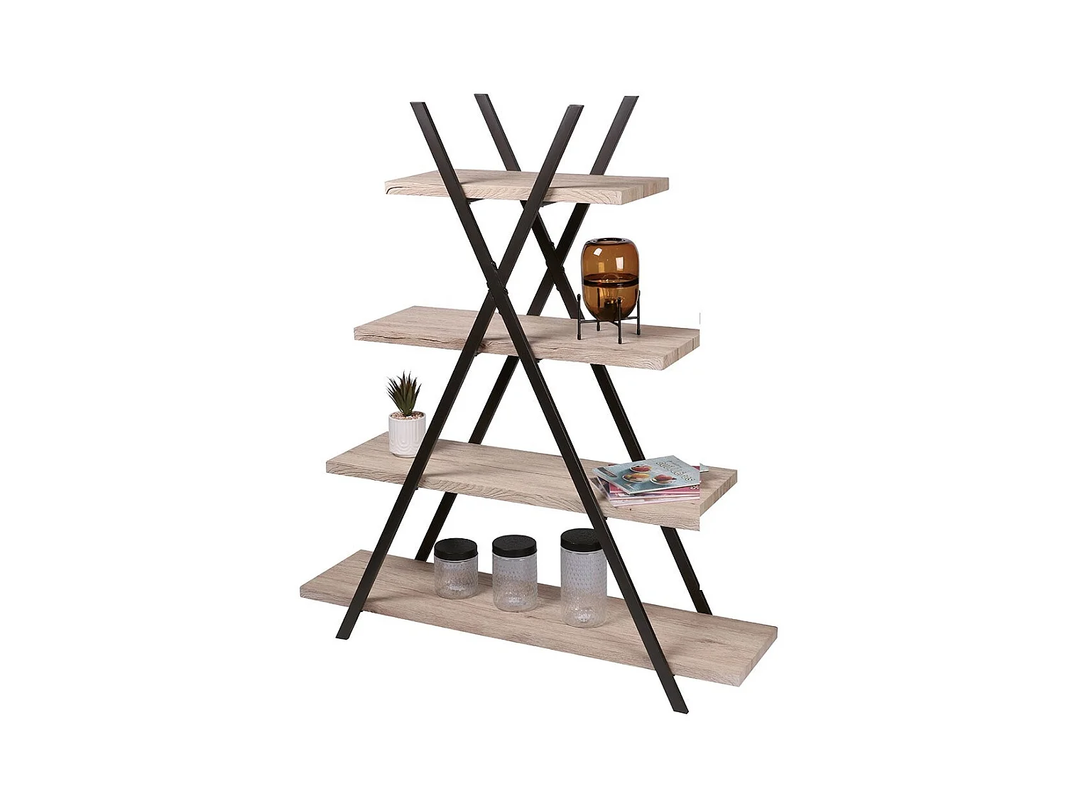 Piramide boekenkast 4 niveaus uit de DARYL collectie - Industriële stijl, eiken en zwart kleur