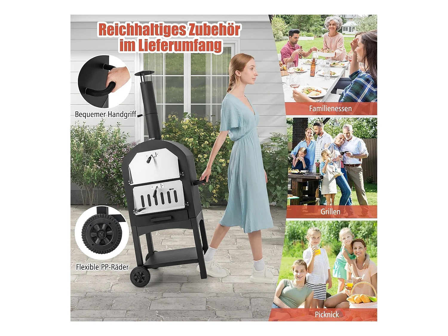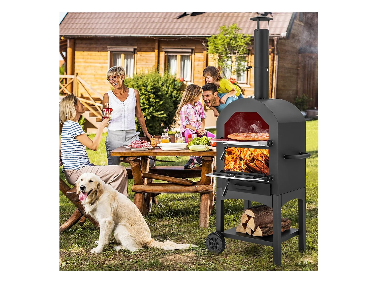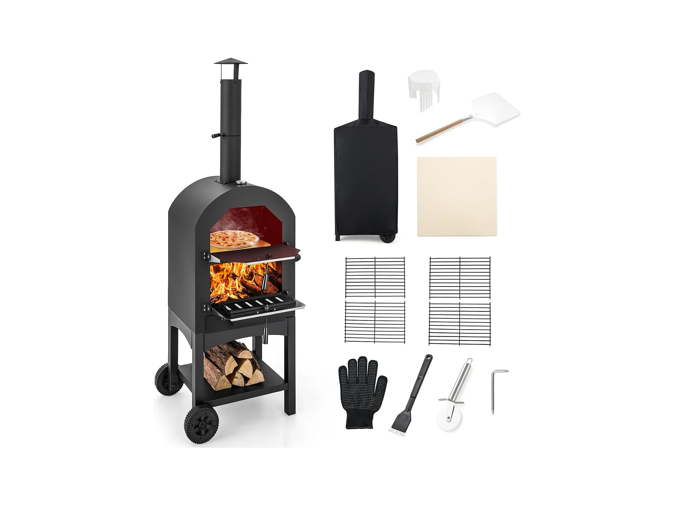4-in-1 pizzaoven, outdoor grill, houtgestookte pizzaoven, pizzasteen, pizzaschep en grillrooster, draagbare tuinoven voor tuin, camping, feest
