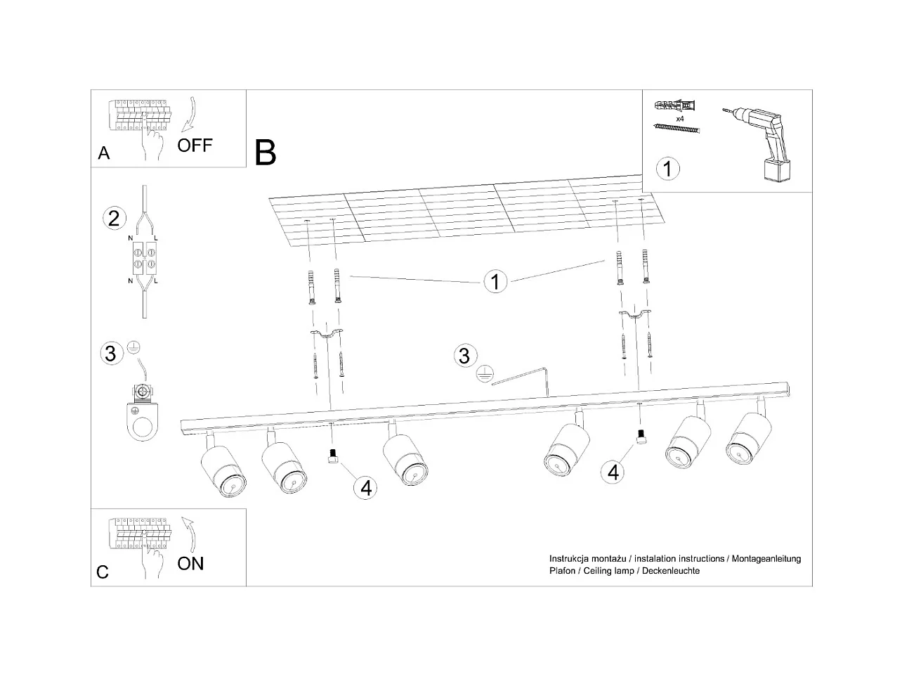 Plafondlampen Torim modern van - 6 lichtbronnen 4000K - L.135 x H.20 cm - zwart