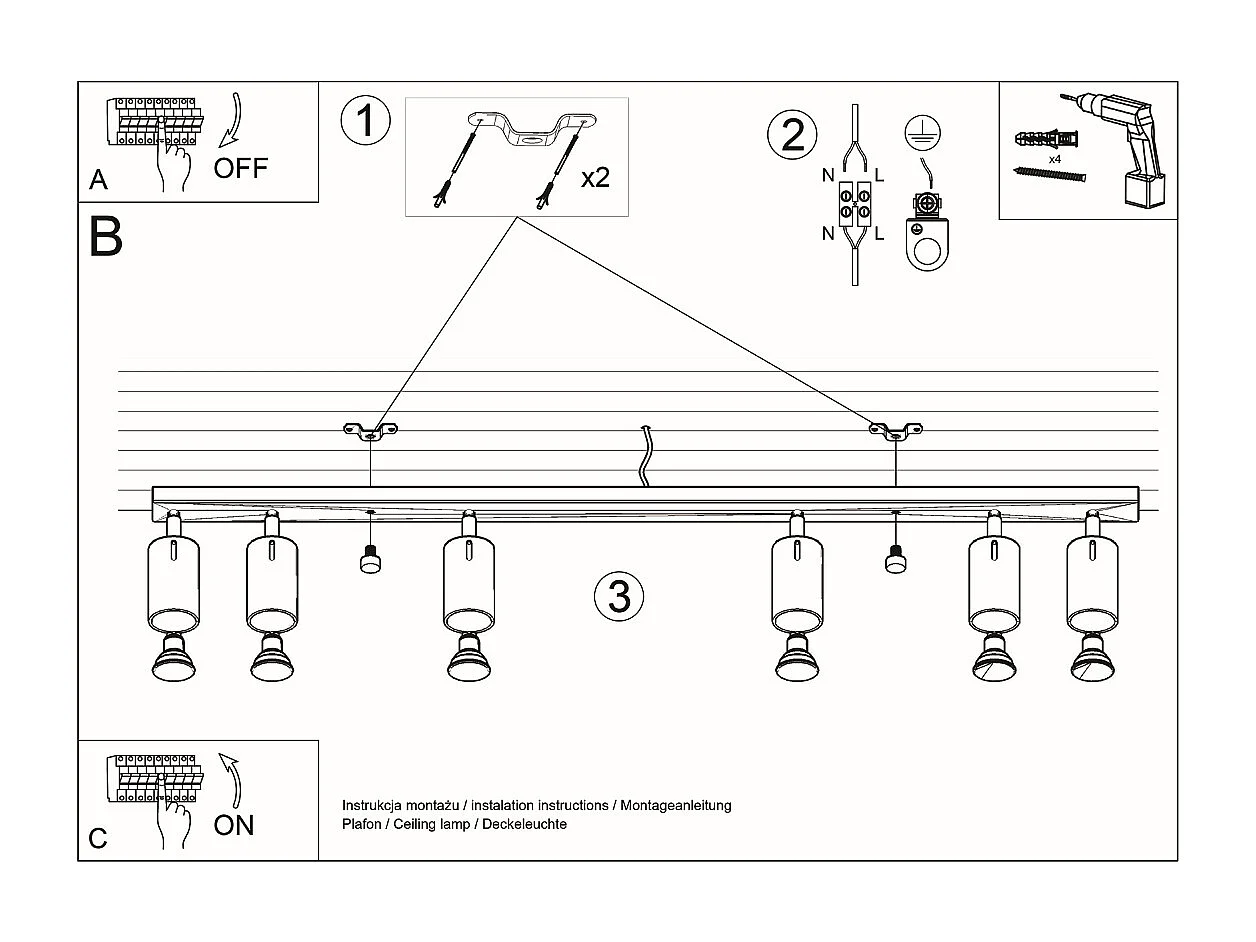 Plafondlampen Torim modern van - 6 lichtbronnen 4000K - L.135 x H.20 cm - zwart