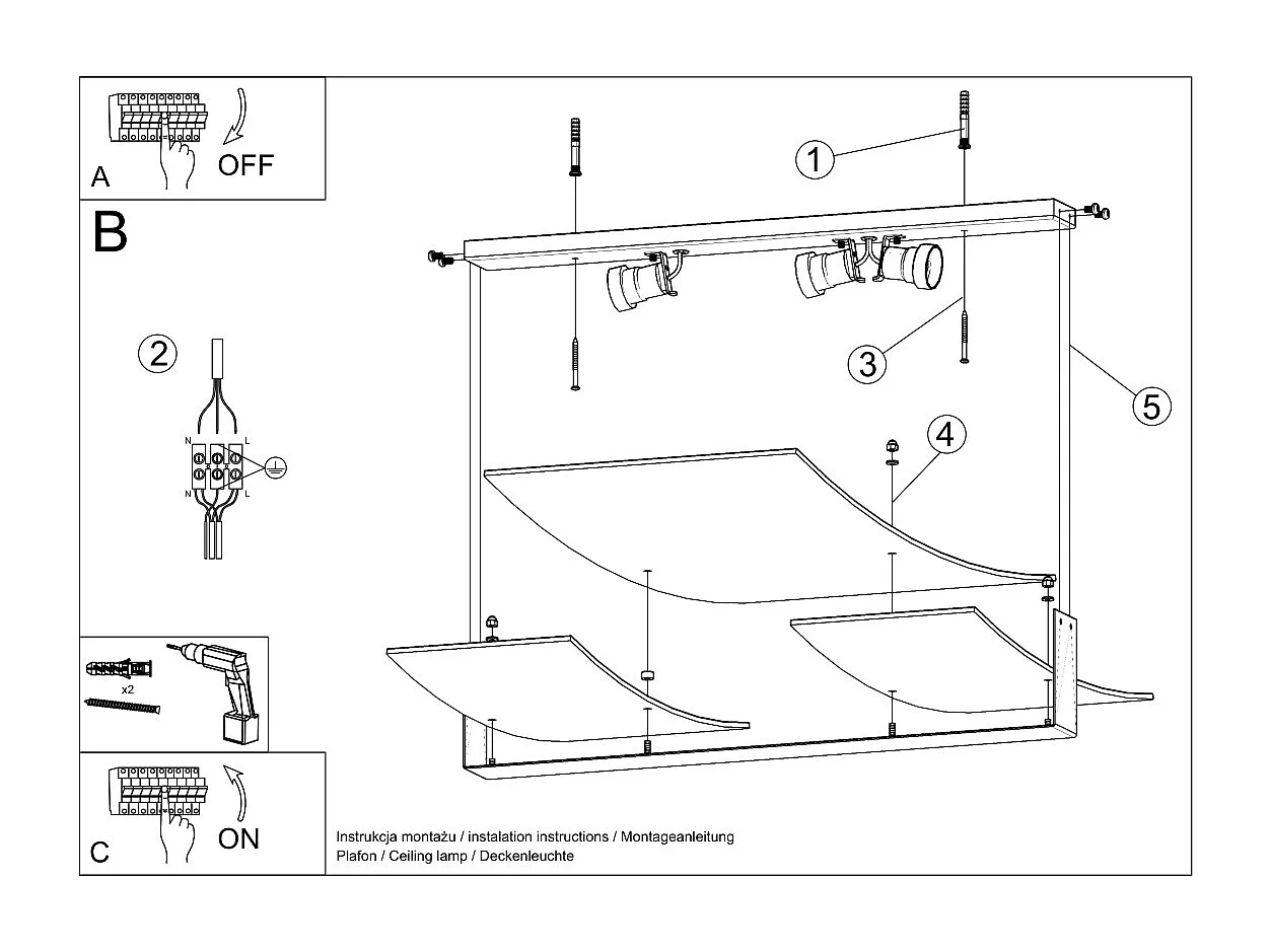 Plafondlamp Omiq Modern Van - 4 Lichtbronnen - L.30 X H.15 Cm - Wit