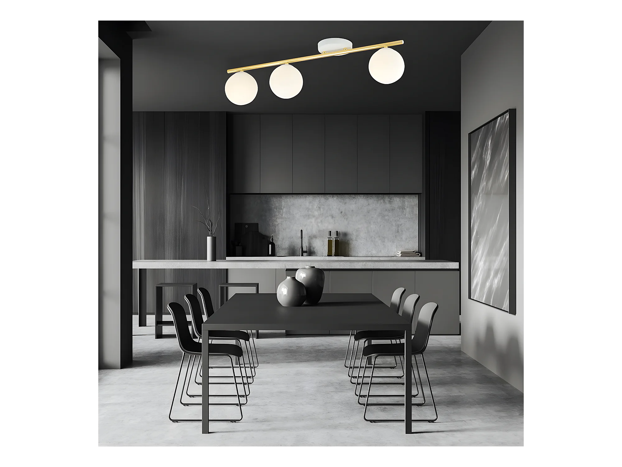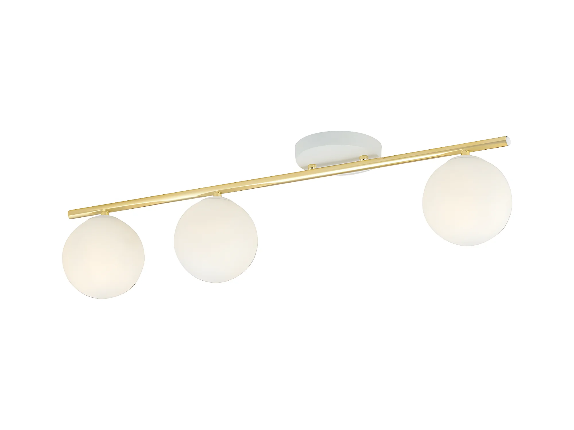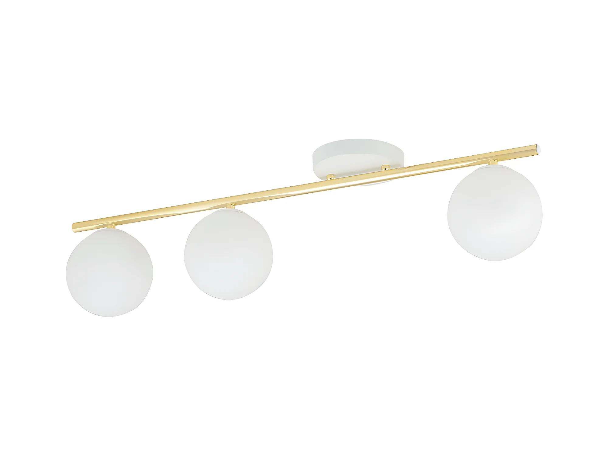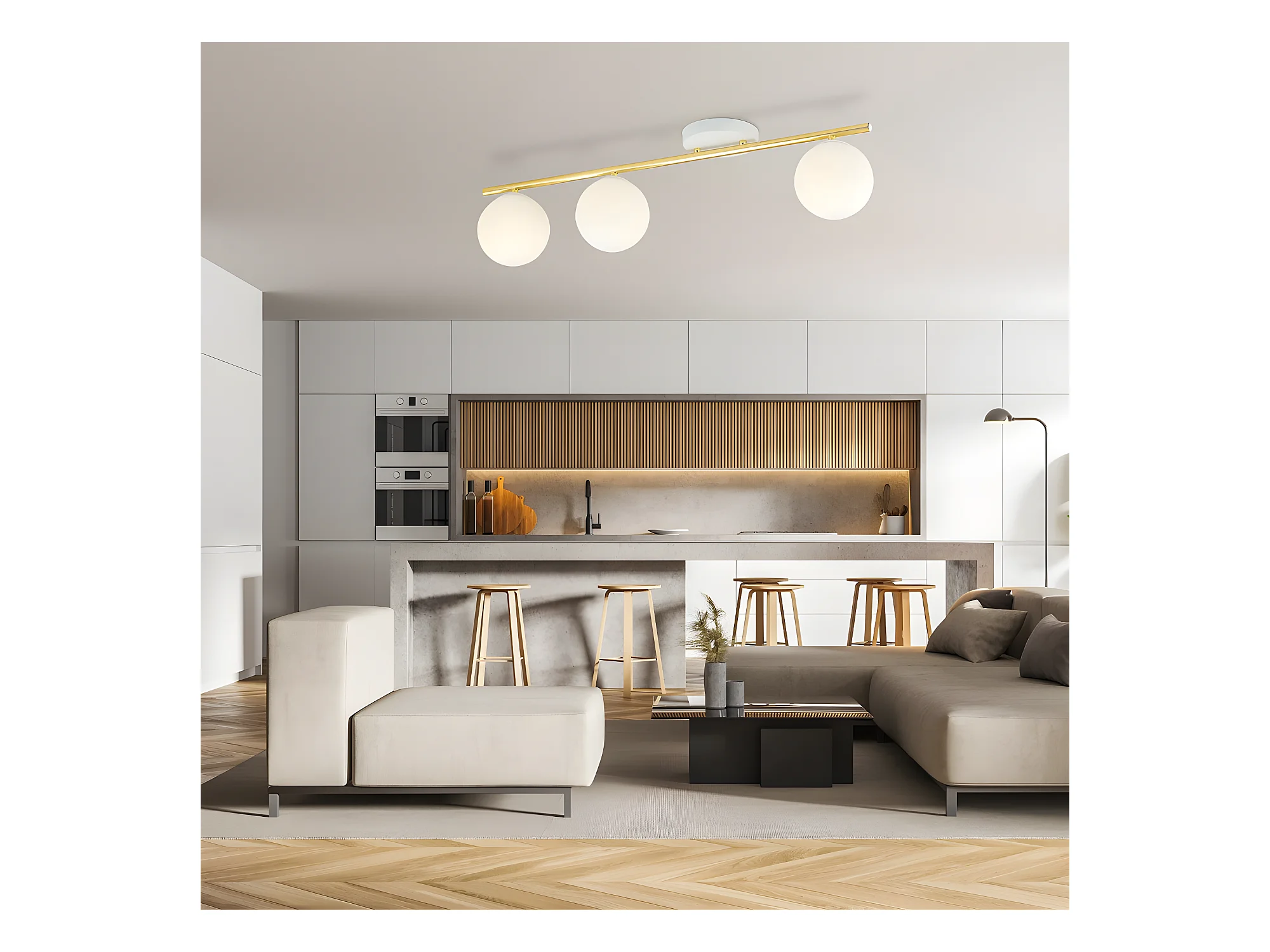Plafondstrip Valenti in wit en goud met 3 glazen bollen 3xE14