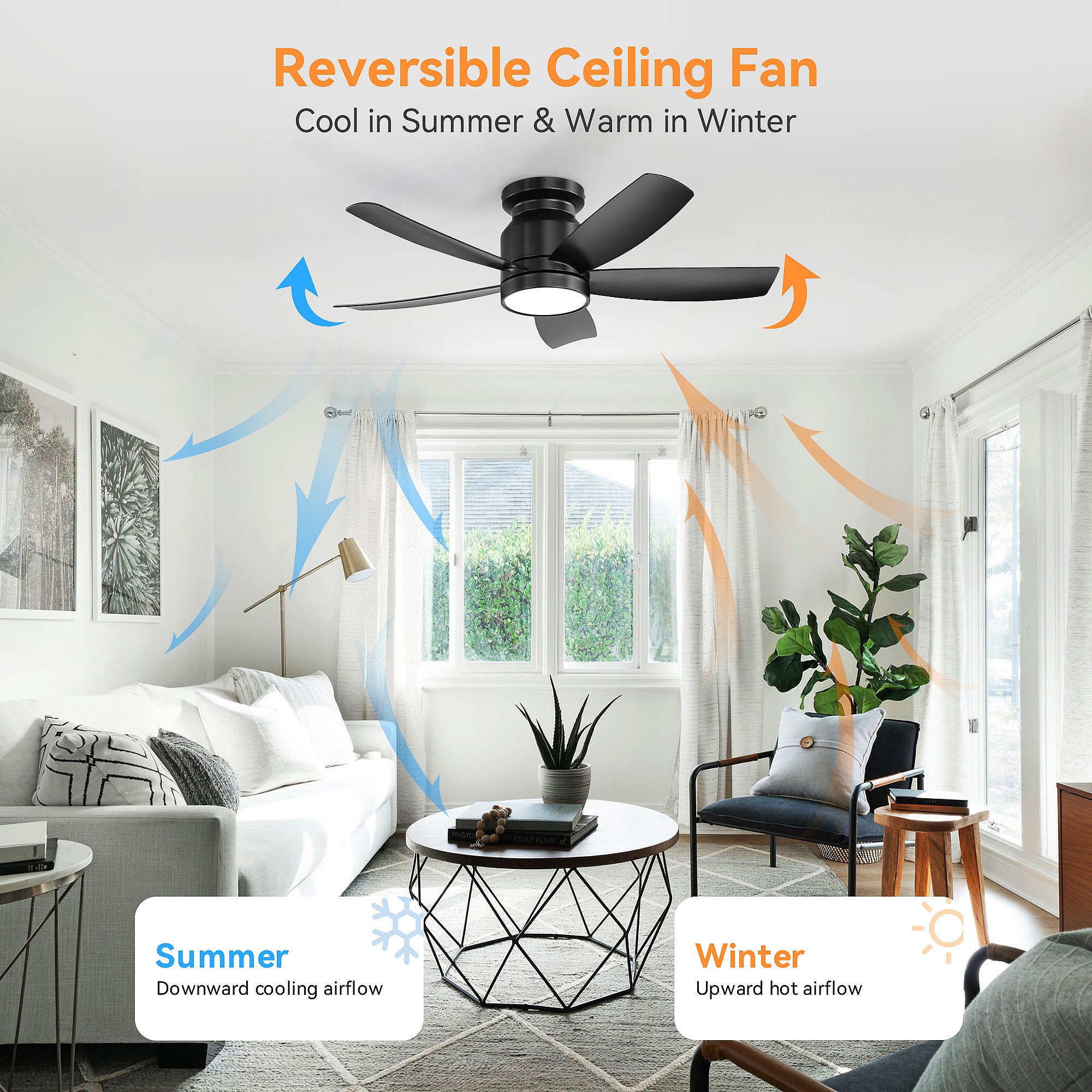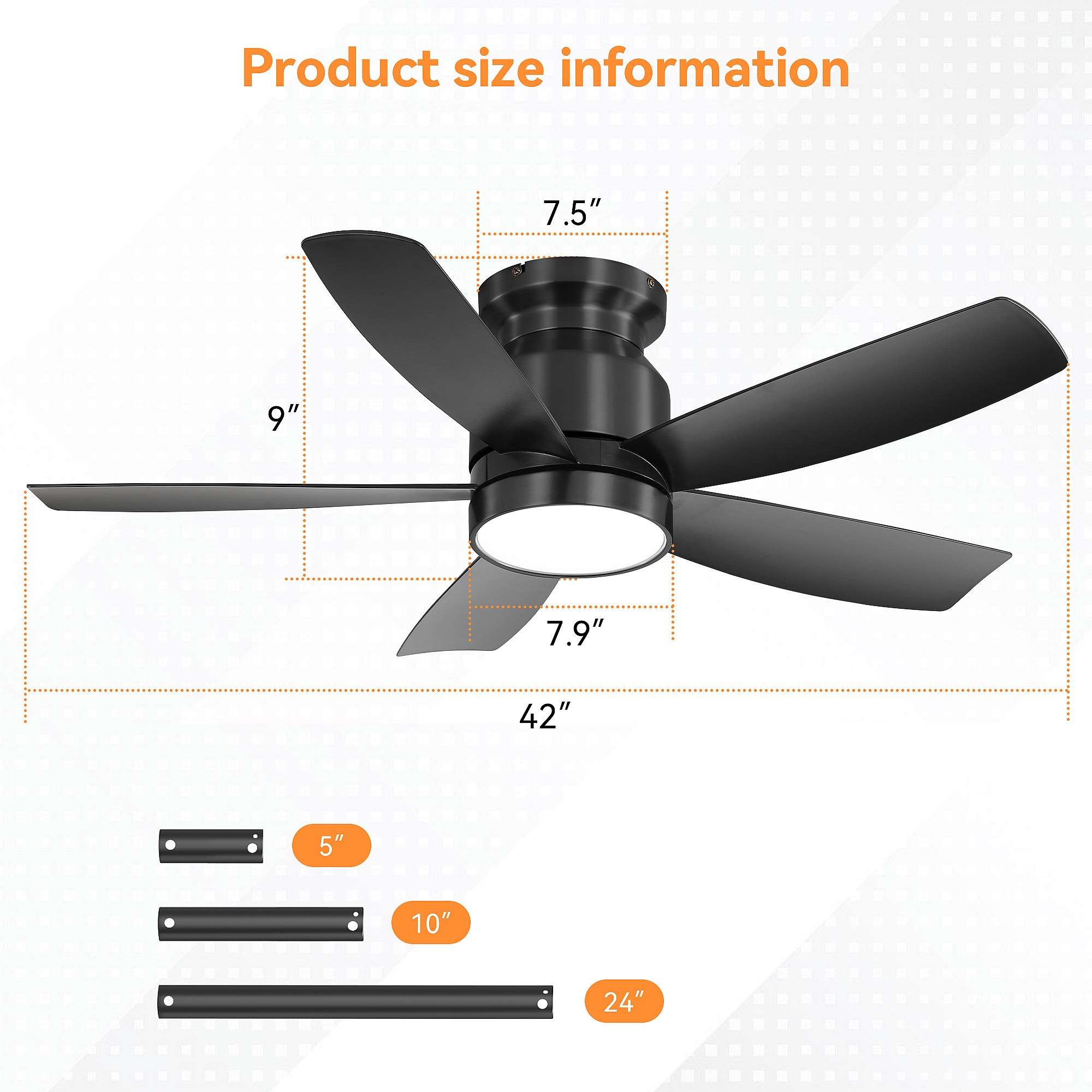 Plafondventilator van 42 inch met 18W LED-verlichting, afstandsbediening, 5 ABS-bladen, omkeerbare DC-motor, zwart (106,68 x 106,68 x 23,11 cm)
