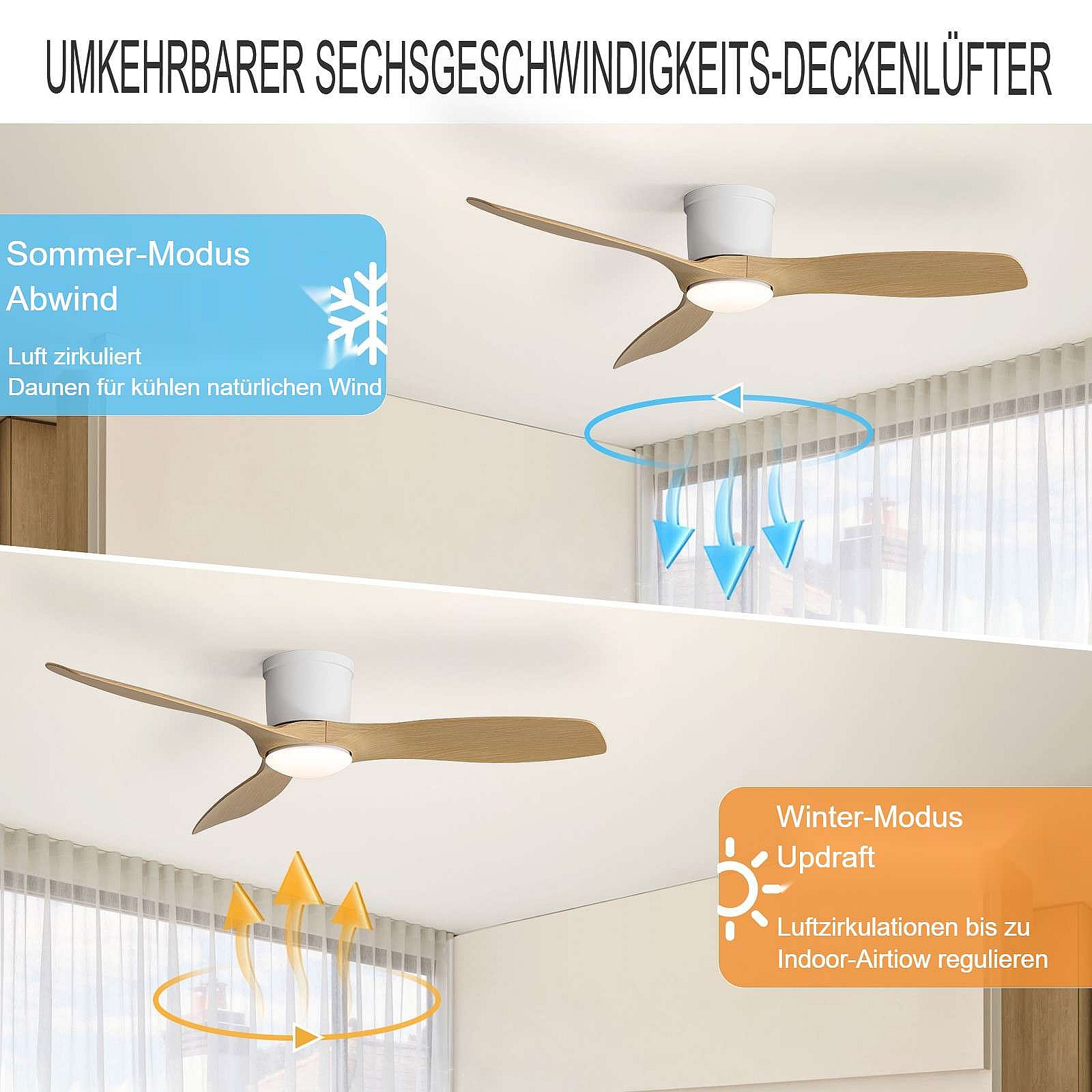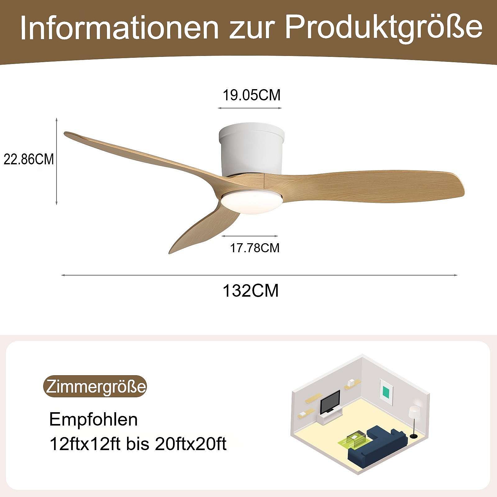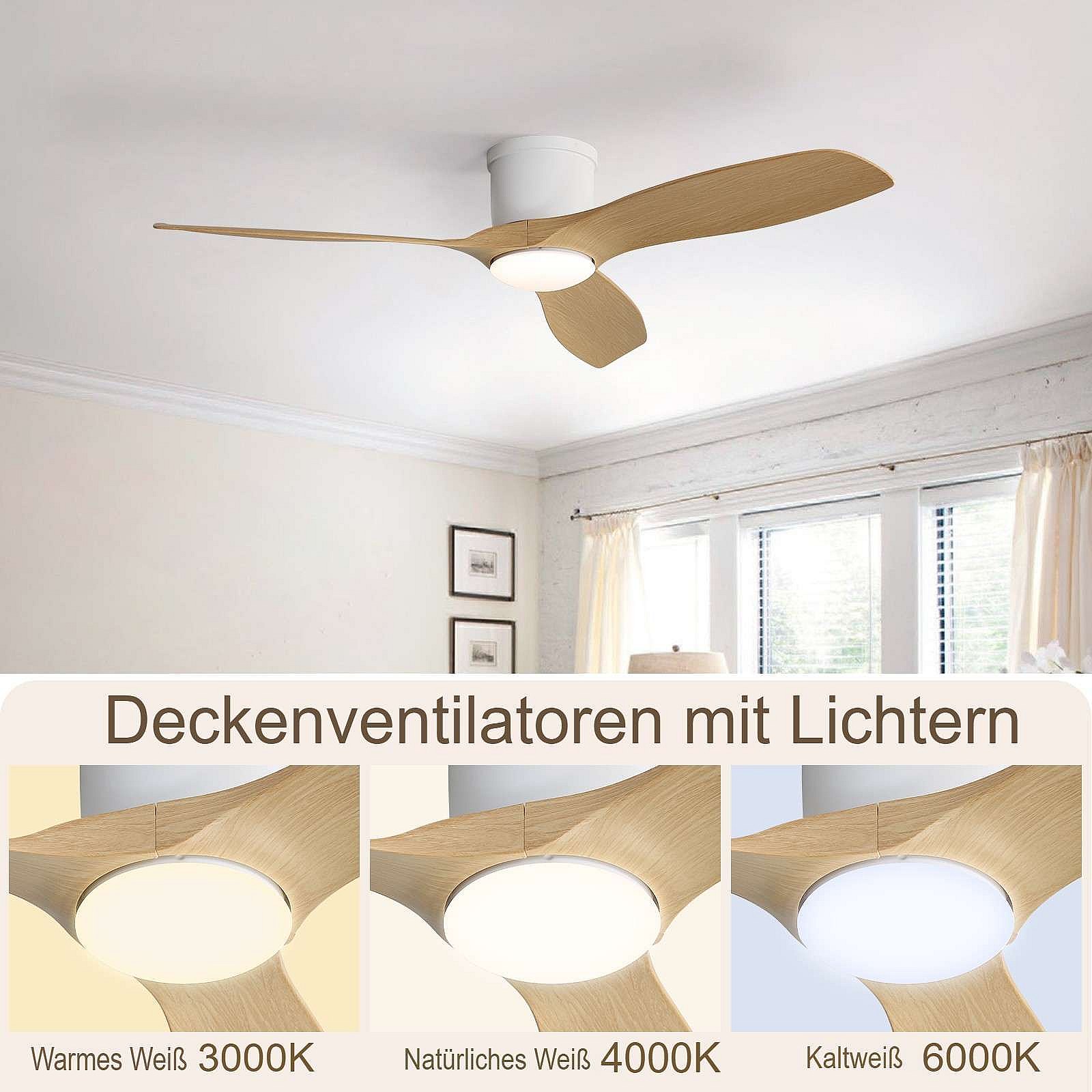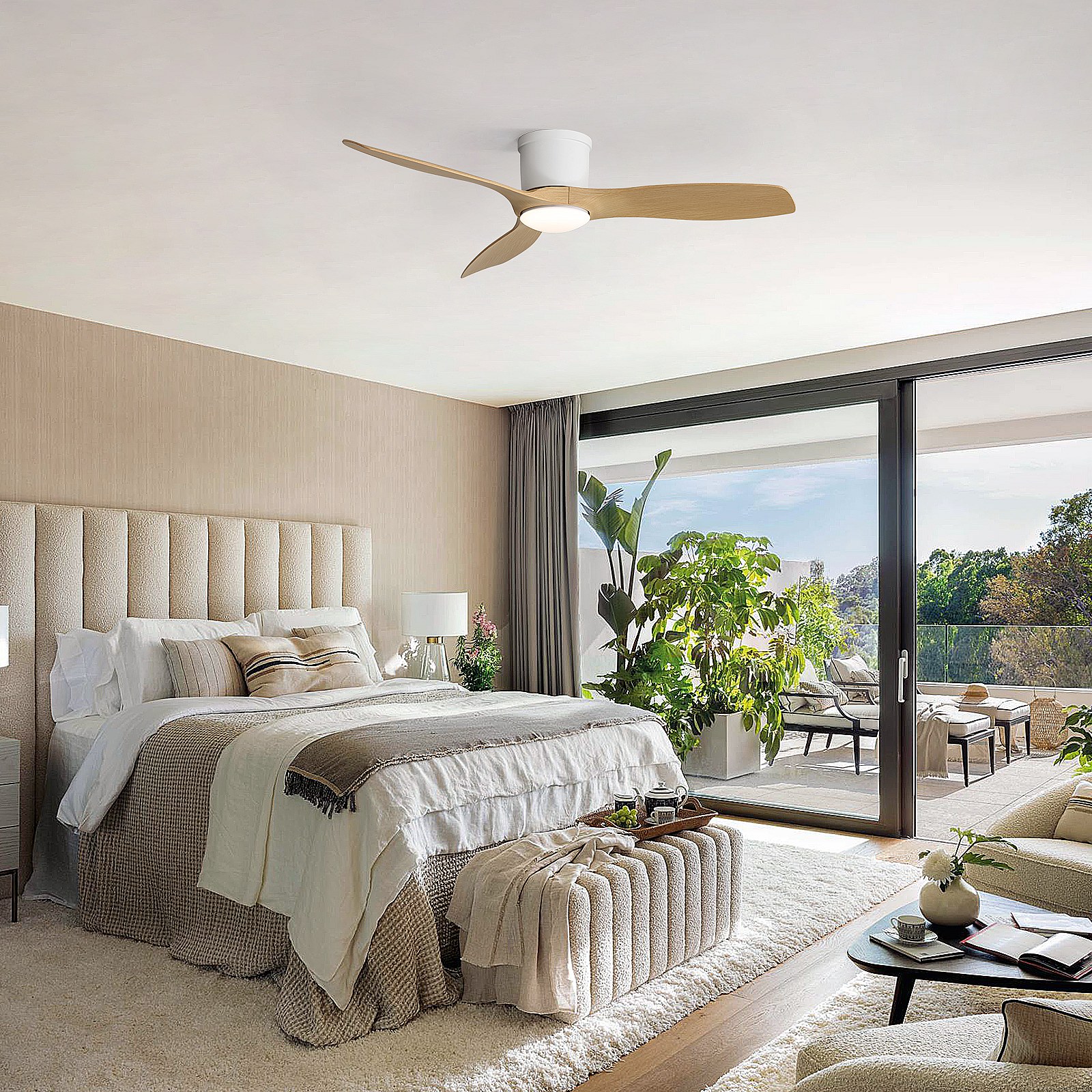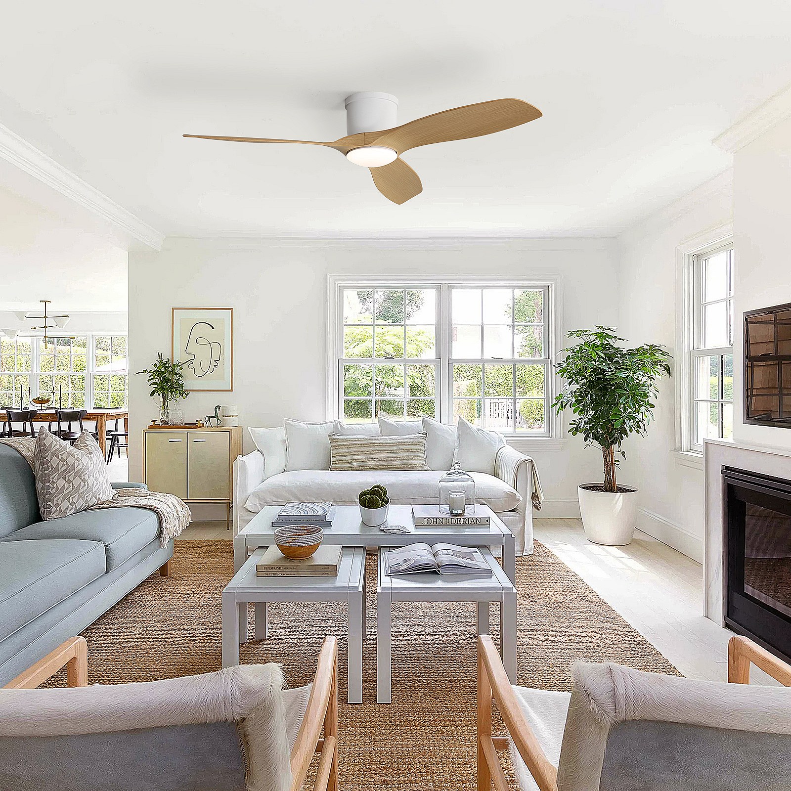 Plafondventilator van 52 inch met afstandsbediening, 3 ABS-bladen, omkeerbare DC-motor, dimbare 18W LED-verlichting, wit (132x132x22,86 cm)