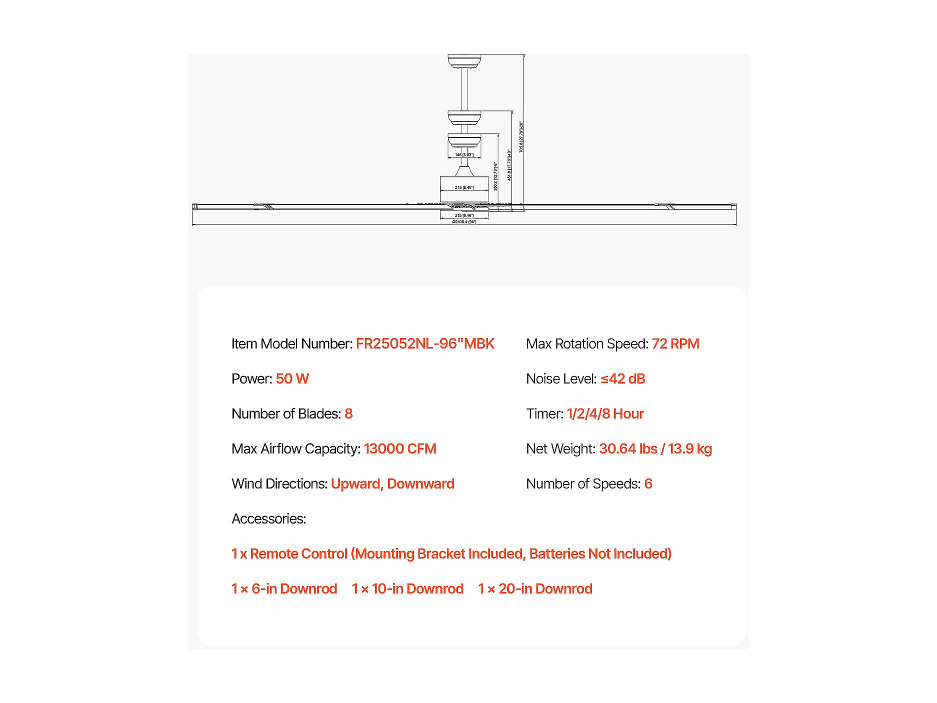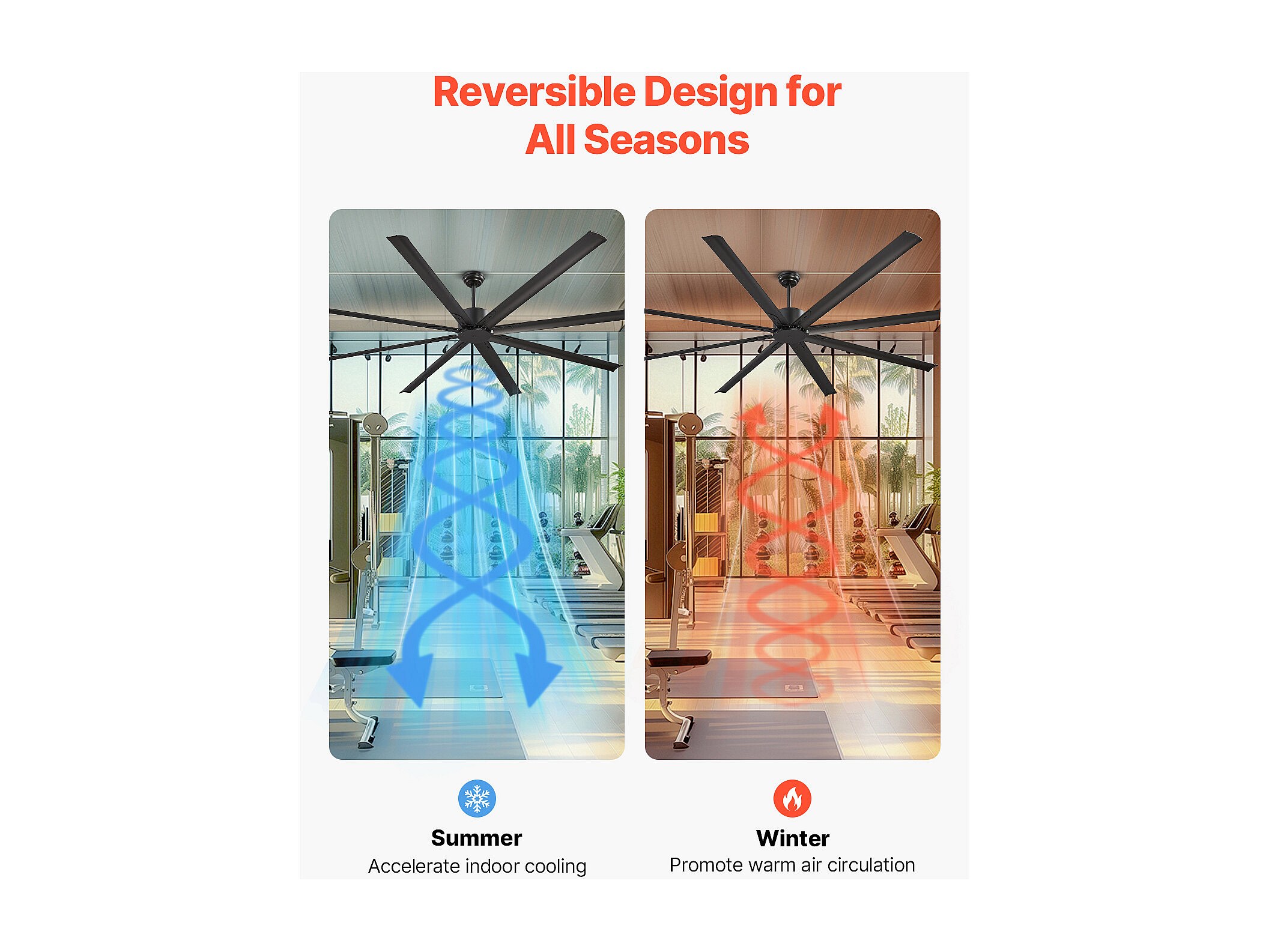 Ventilator SucceBuy Plafondventilator zonder Licht 213 CM, Telecommando 6 Snelheden, 8 Bladen in Aluminium, Moderne Inbouw Exterieurventilator