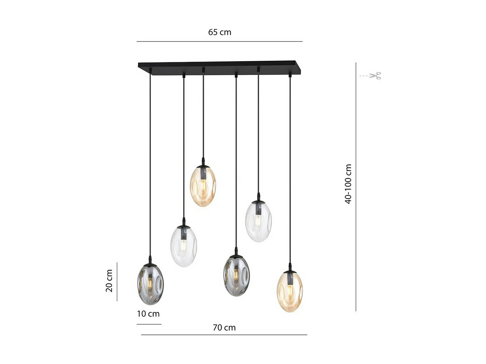 Hanglamp Astral 10, Zwart, 70x100x22 cm, Seven Design