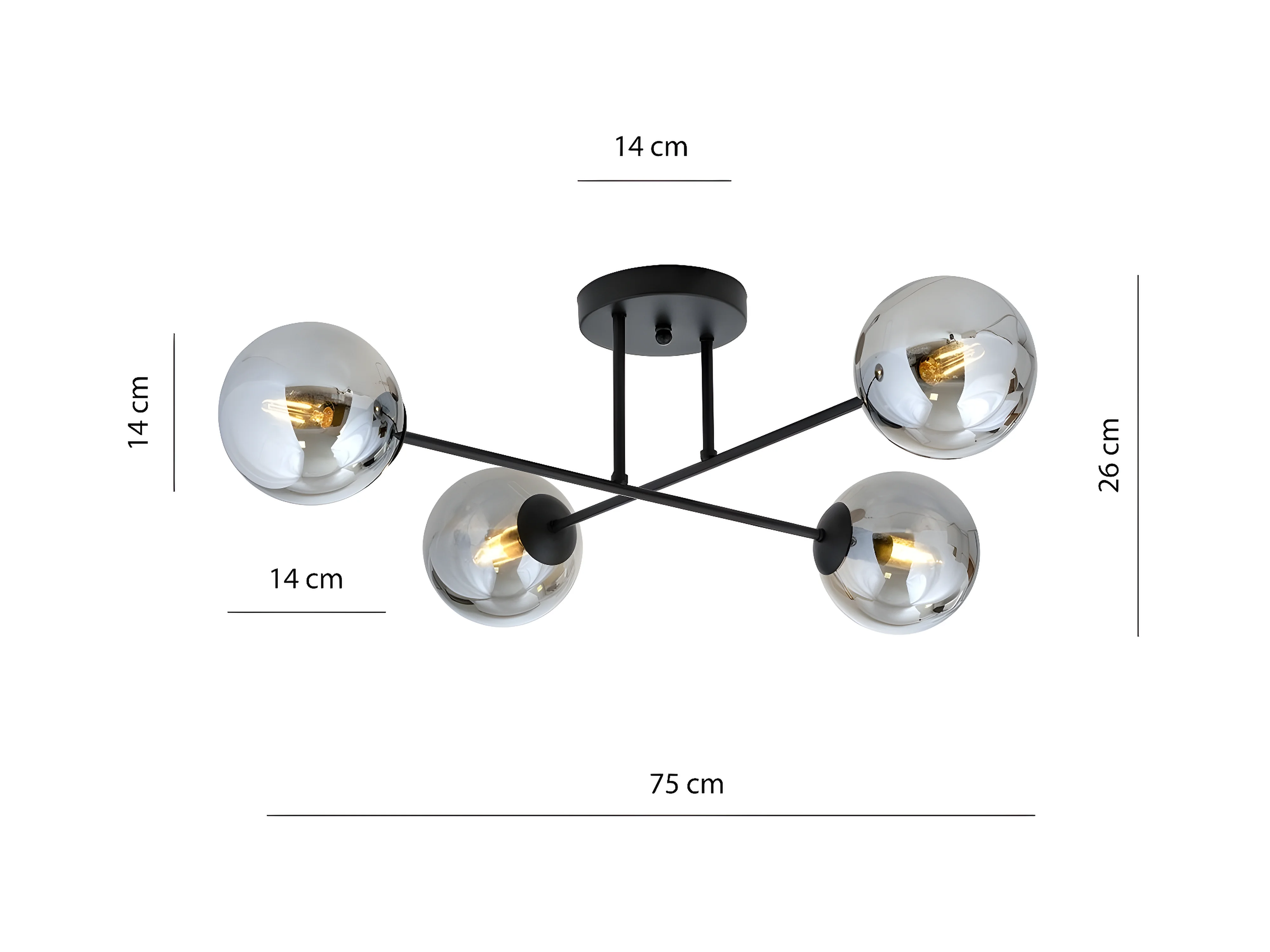 Plafondlamp Aurora, Zwart, 81x19x19 cm, Seven Design