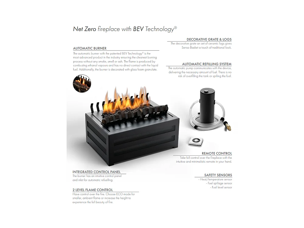 Planika - Senso Basket BEV Ventless Bio-ethanolbrander, afstandsbediening, echte vlam, staal