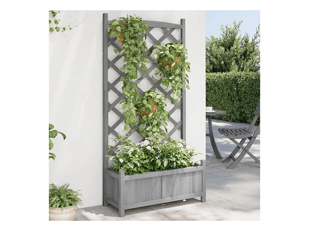Plantenbak met plank Grijs 54x34,5x81 cm Massief grenenhout